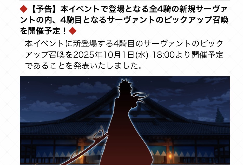 https://www.fate-go.jp/special/2025-shinsengumi_the_end/細かい部分……主に平助曇らせ丁寧だったのにそんだけでいいのかとか近藤さんのターン短くないかとか新撰組については何も解決してなくねとか言われまあそうなんですけど…な部分はあるけど話運び総合的に個人的にはまあよかった。