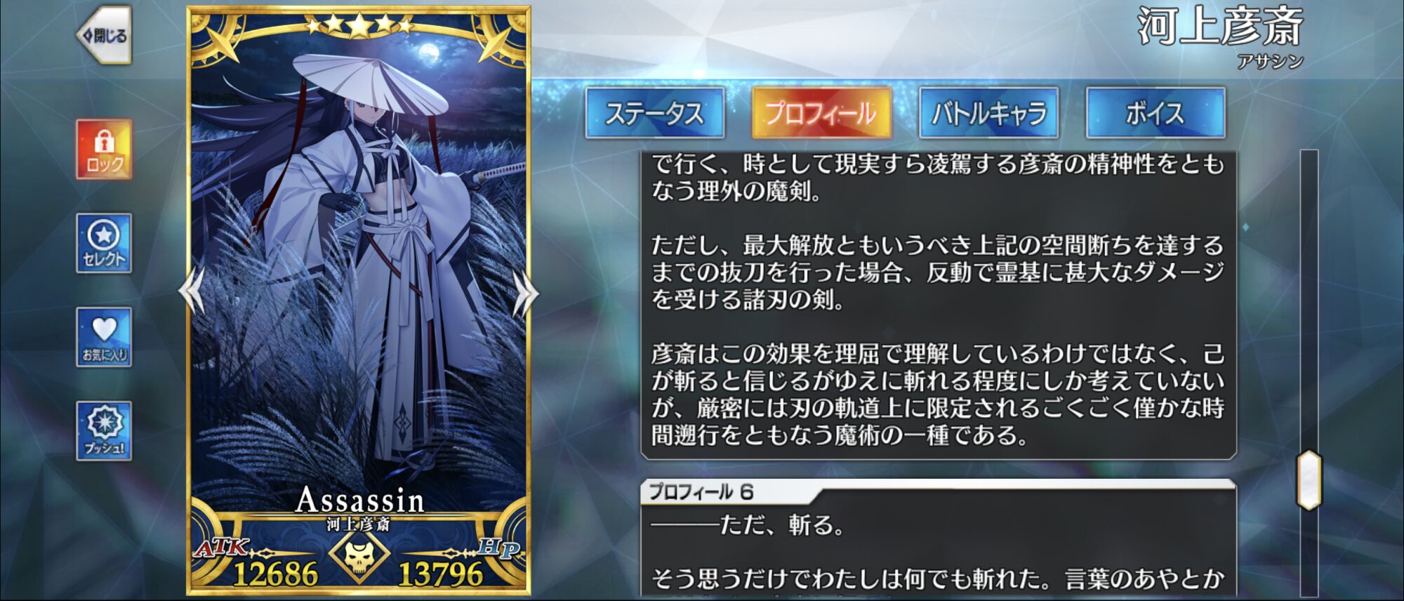 実装されている面子の中、聖杯戦争環境にも強い純粋な剣士は、天眼持ちと因果両断の武蔵、なぜか妖術も斬れる剣聖のりゅうたんはツートップだろう。