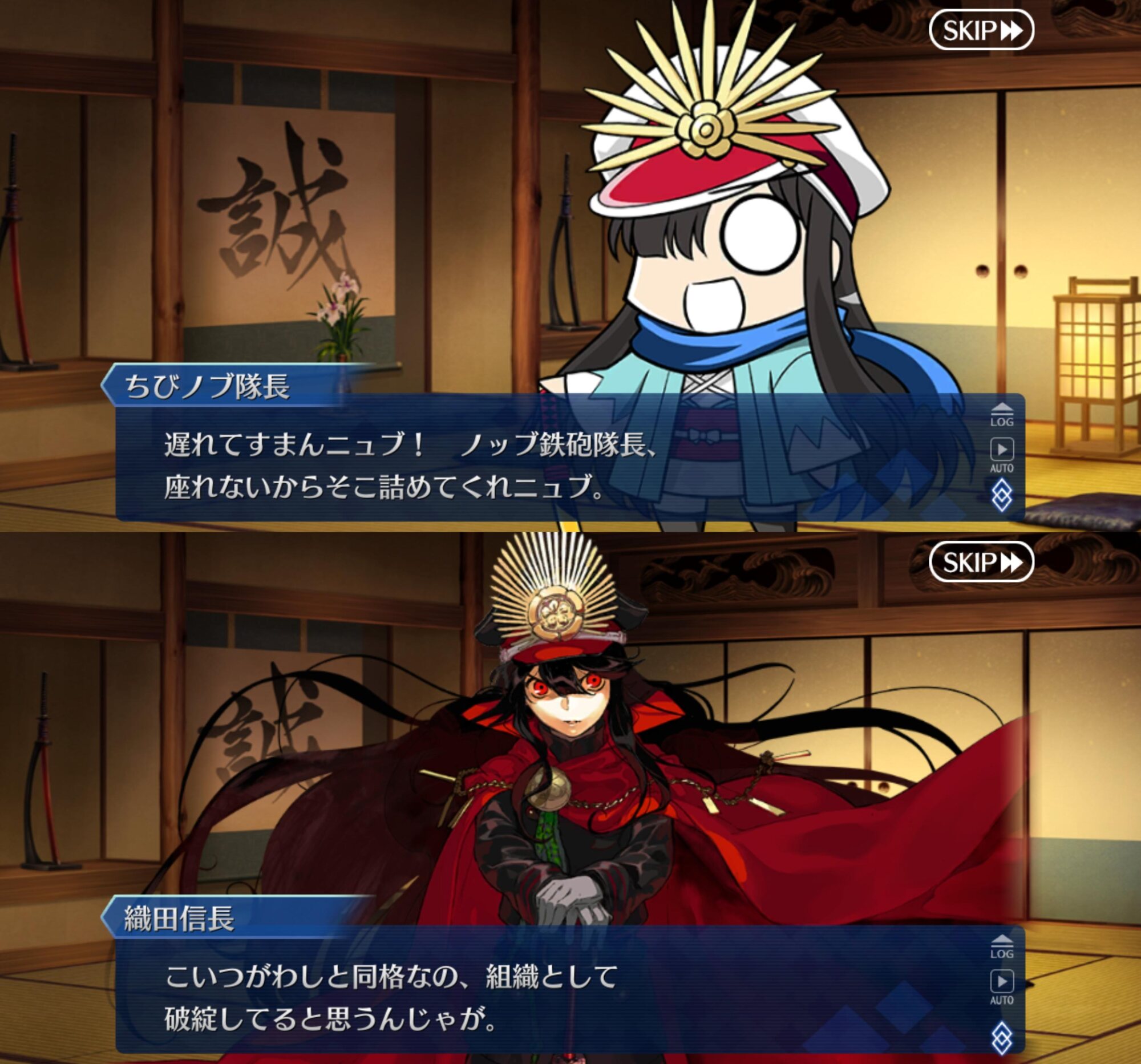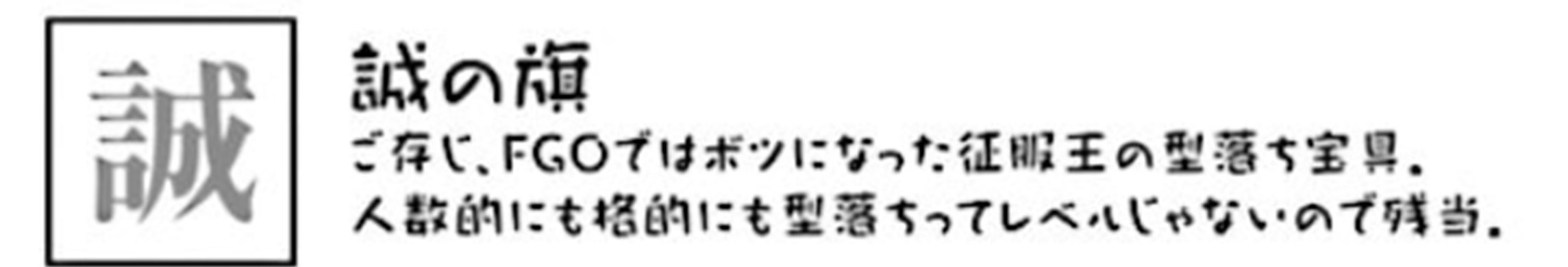 プレイアブルだと黒の剣士状態でも宝具として使えるんだろうけど、あの状態でのレア演出として、局長を立ち直らせた縁でちびノブ隊長もシレっと誠の旗の下に集って、他の隊長の面々から(なんでコイツがいるんだ・・・)って思われてほしいと考えてしまう。>>23