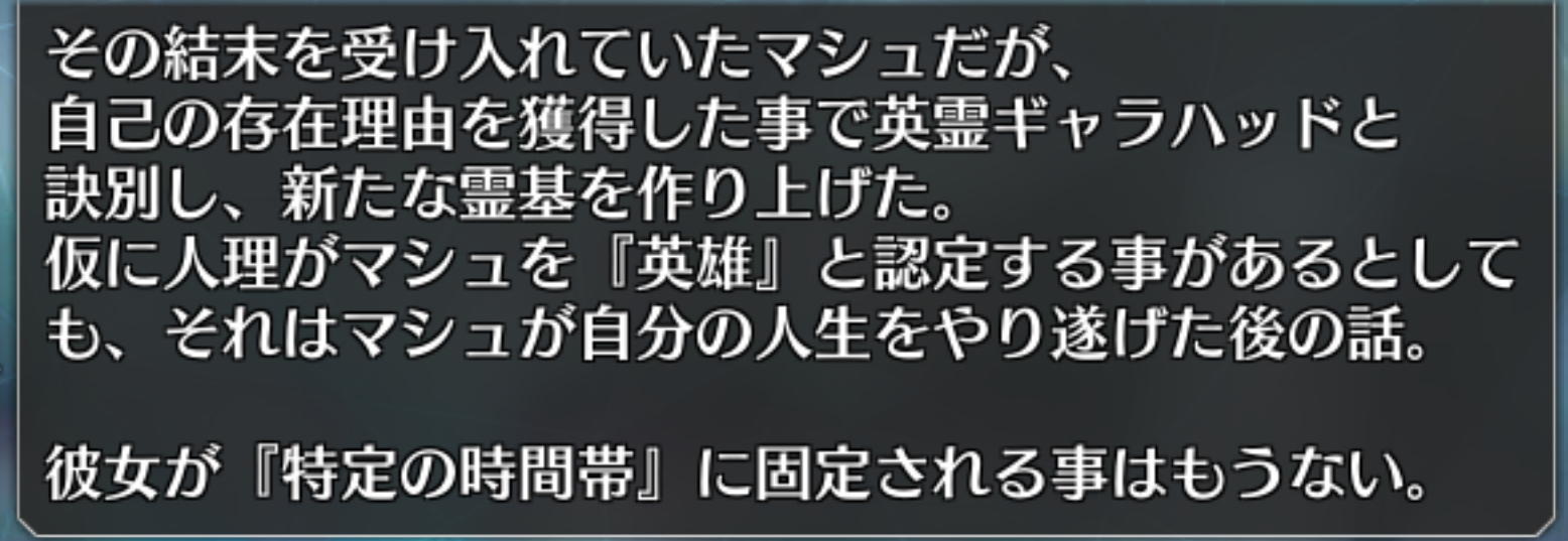 人生を全うしたあと英霊になる可能性は示唆されてるから⋯⋯死後マシュに聖杯にかける願い=聖杯戦争での召喚に応じる理由があるかどうかは分からないけど金のモヤッとボールが90+でドロップする!どうして私の欲しい素材は90++で落ちないんだ!