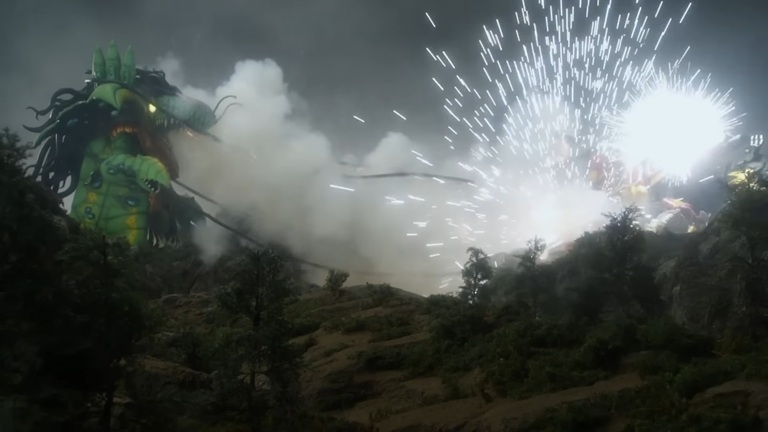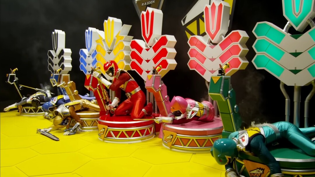 この時点でのスーパー合体のライデンキョウリュウジンをフルボッコ(必殺技すら封殺してくる)のが次回での新合体への引きとして優秀な悪役っぷりだぜデーボス様。調べてみると分かる戦隊強化形態の胸アーマー率が高い