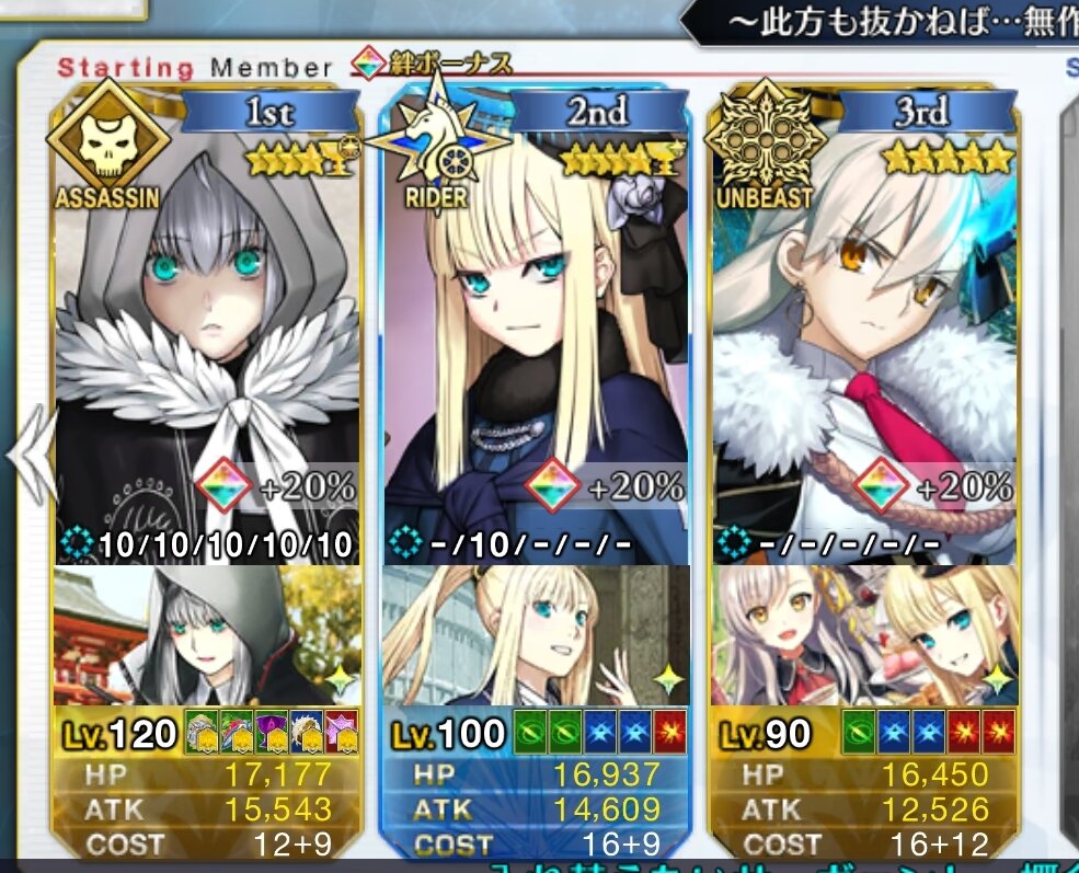 同じ単体ステラ使いとしては配布故に宝具が重ねやすく相手を選ばず殴れ草十郎という大きな壁がネック。殴られてNPを稼ぐという若干敵の動きに依存するコチラとは異なりNP倍加という特殊な方法でチャージできるのも異質の使い勝手だけど、こちらは壁になりつつ乗算のかかる複数のバフに加え、特攻付きの宝具だから条件次第で草十郎を上回る超高火力を叩き出せる点で差別化が可能よ