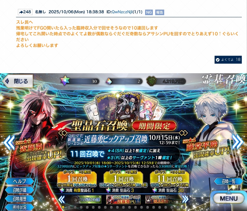 ネタバレ、最終再臨バレに関する話題で書き込むのが躊躇われる場合は以下のスレへ↓