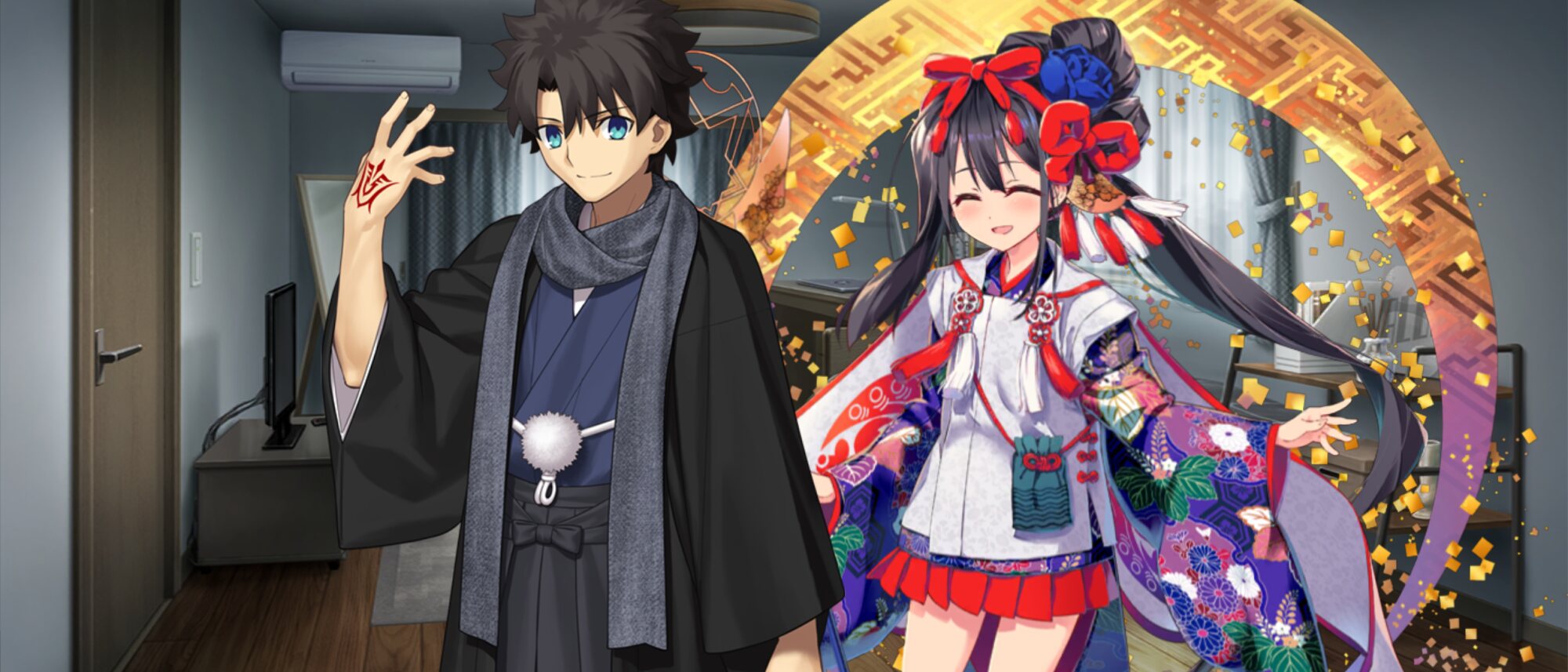 新年、シオンとかダ・ヴィンチちゃん、クレーンさんにキメキメに着付けてもらってセレシェイラさんからは香水もかけてもらう