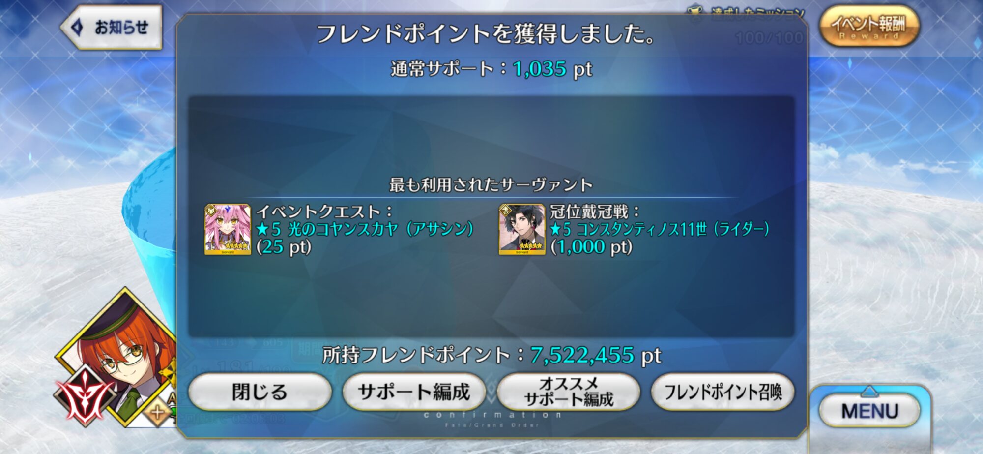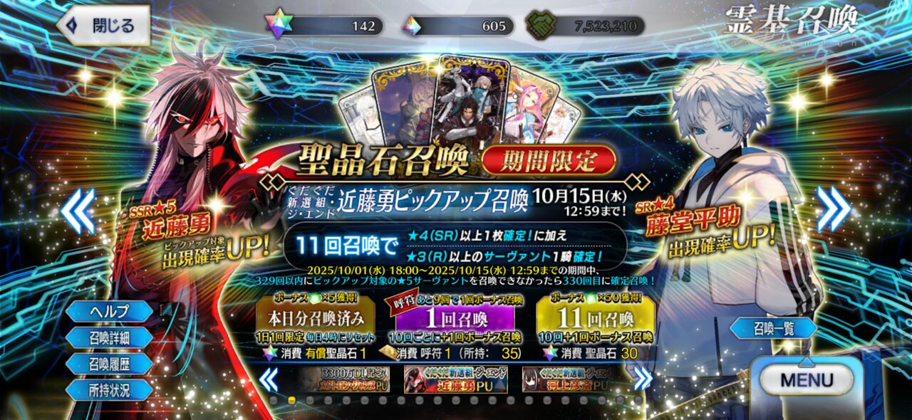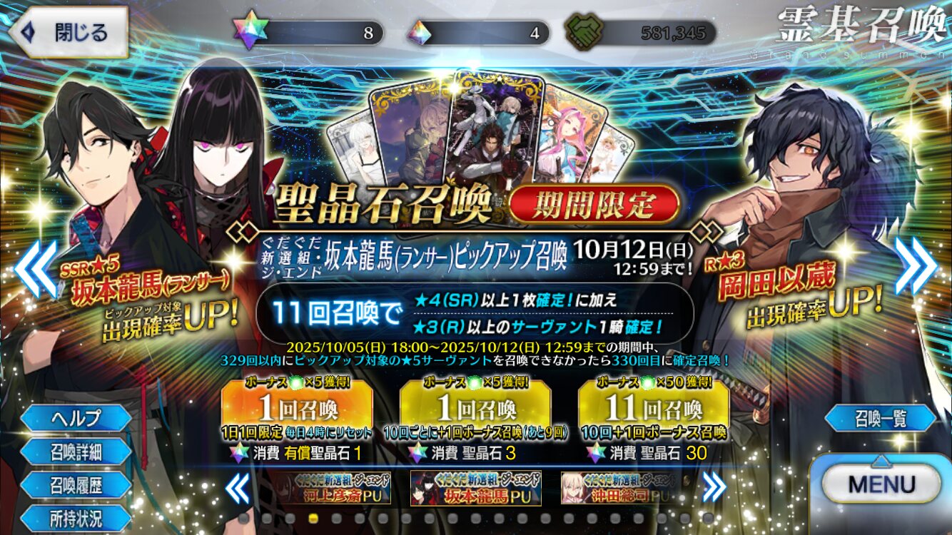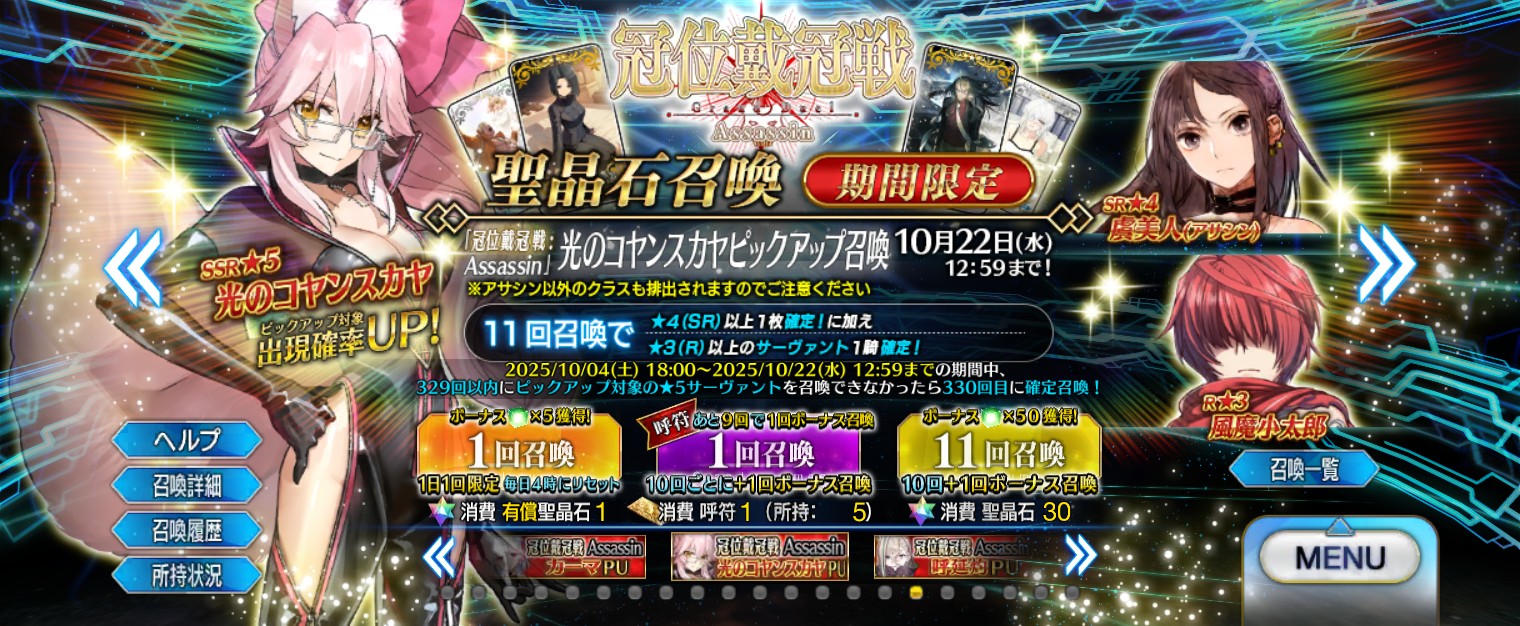 おめでとう!!ゲンジロちゃんのピックアップが延びたことでアサシン戴冠戦で石を補充できるようになった。この意味が分かるな?