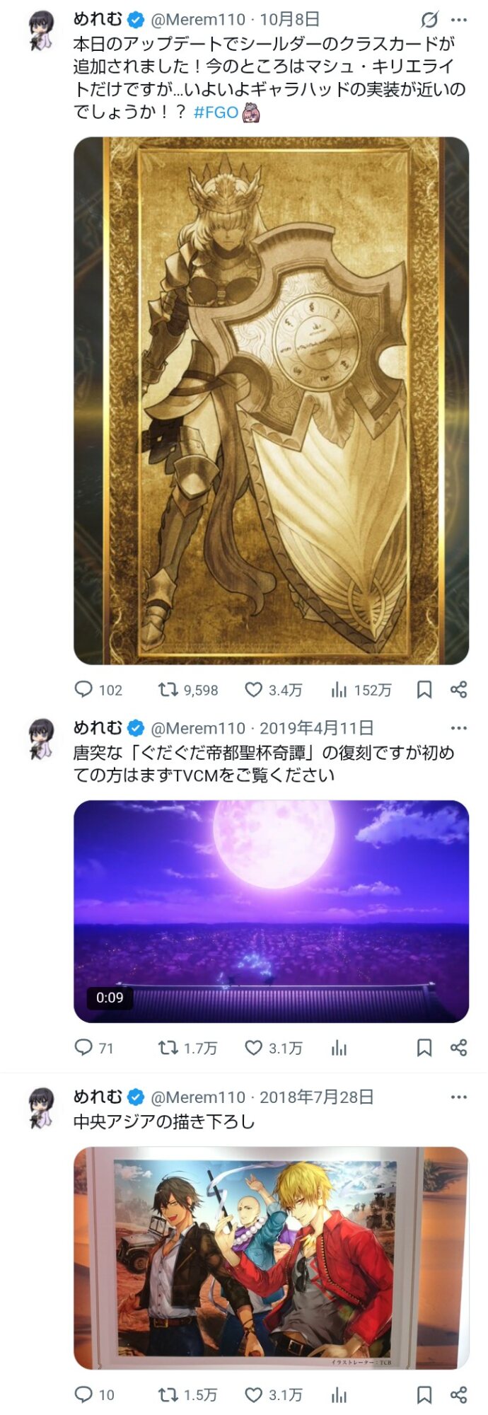 鯖との関わりの方が多かったからあまり印象ないかもしれないけど無料ストガチャで遺影礼装が出てくると、アタリが引けた嬉しさと、あれから何年って懐かしさと、あの時堪えた悲しみと、なんとも言えない感情に襲われます。
