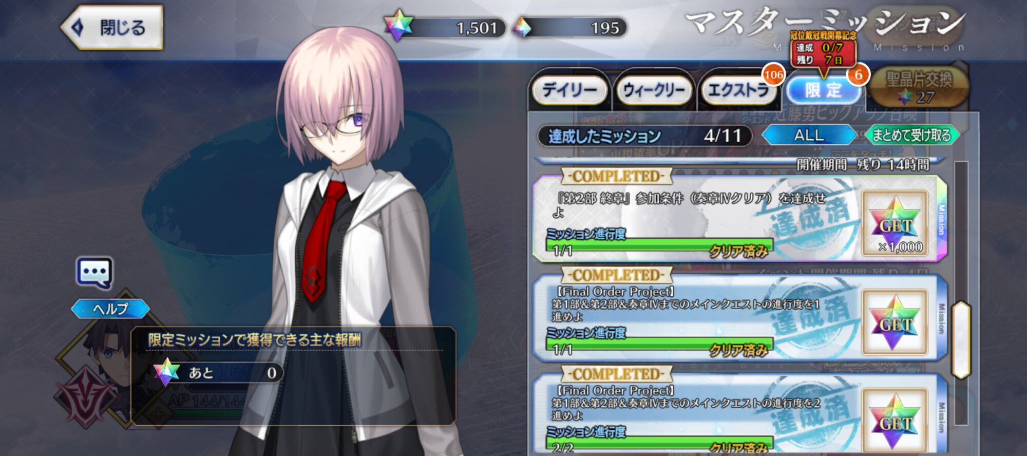 ミッション・スタートっていう礼装が3枚止まりなんで凸したいんだよな…