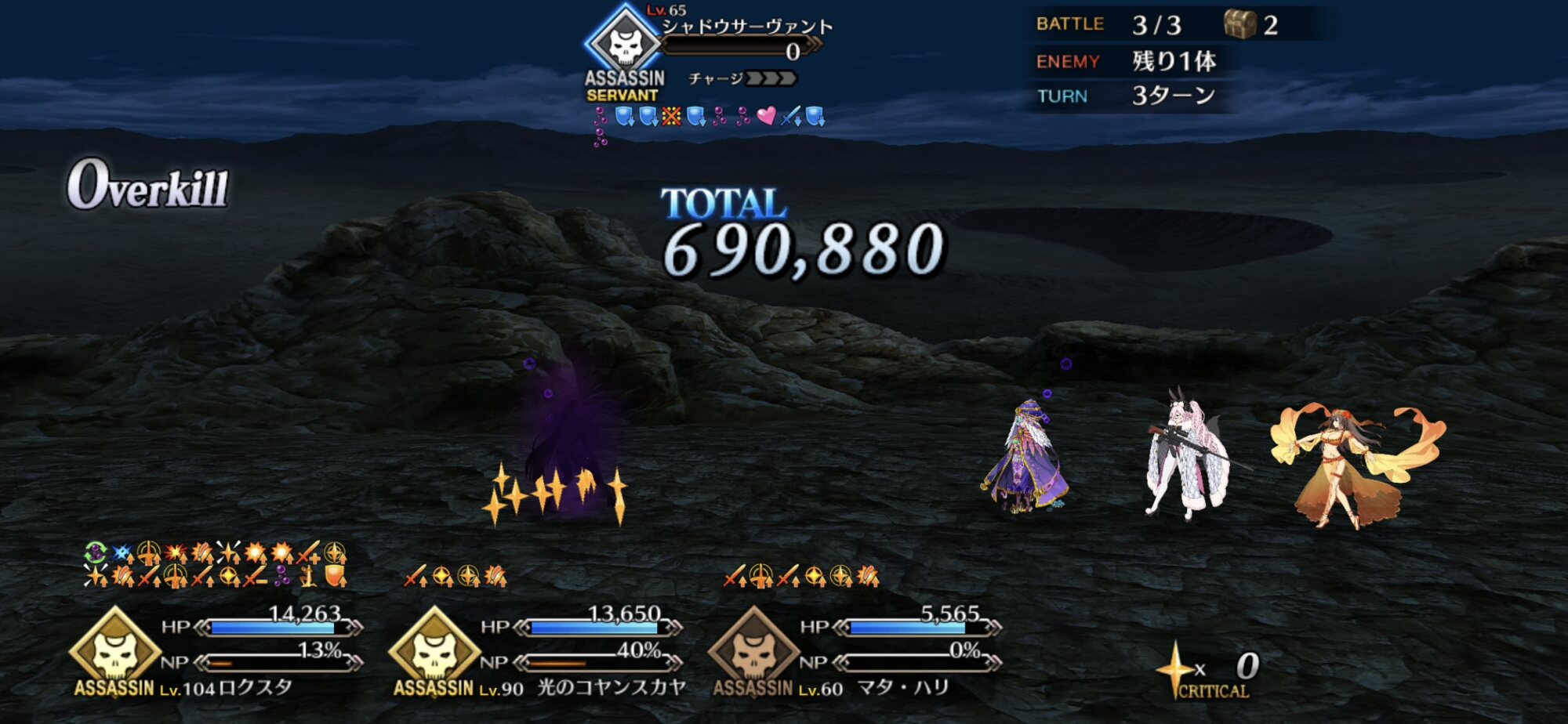 「よーし、星は充分!ここではくのんのスキル使って高倍率クリ威力アップ効いてる鯖のカード3枚引いてクリティカル連打だ!!」