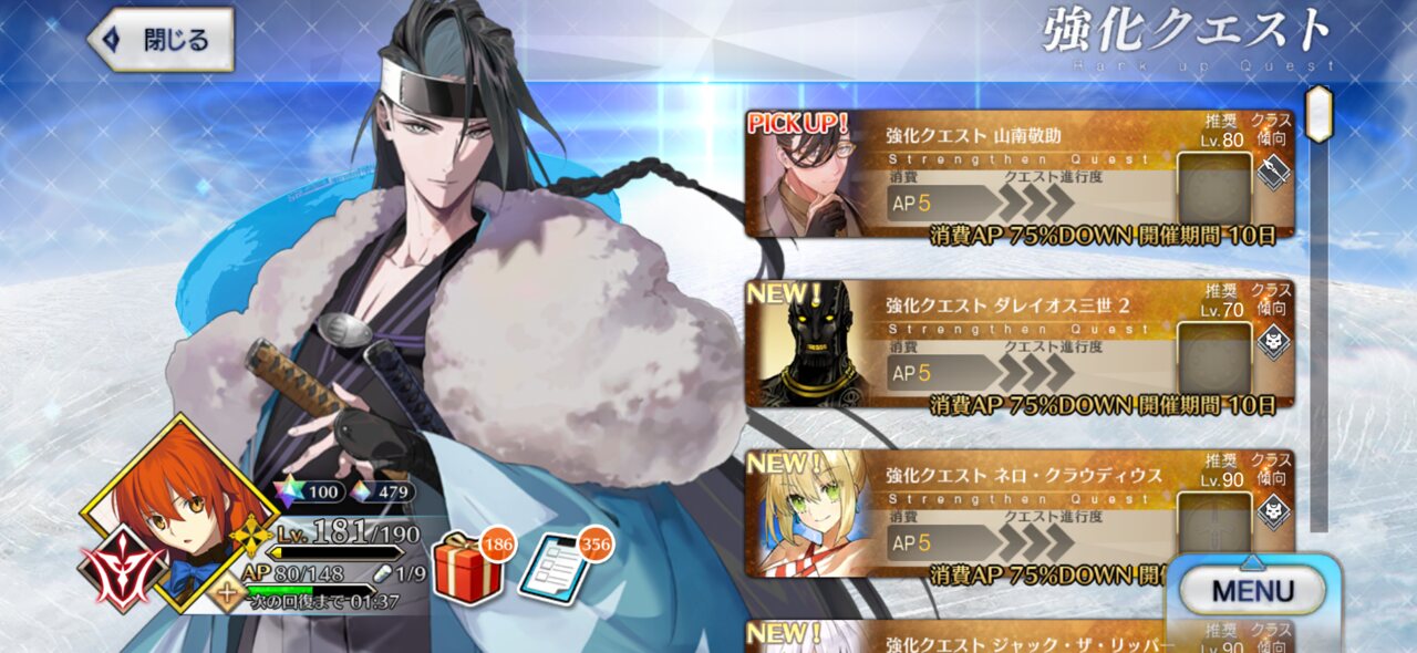 強化クエストはなんとか消化できたんだけど幕間が年単位で貯まっていて申し訳ない気持ちになる。強化込みの幕間も優先して消化したいけどさ、出来てない。>>883