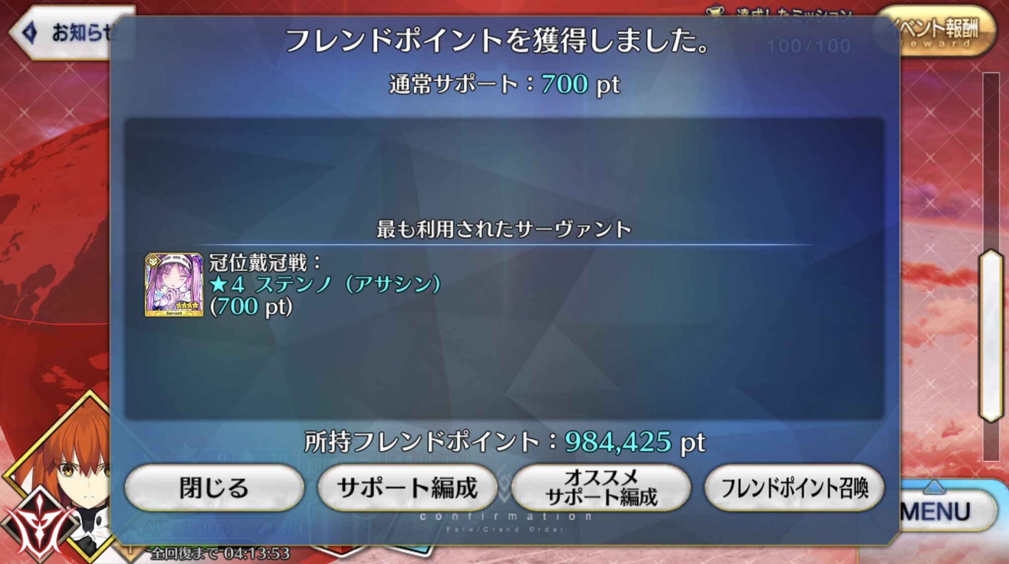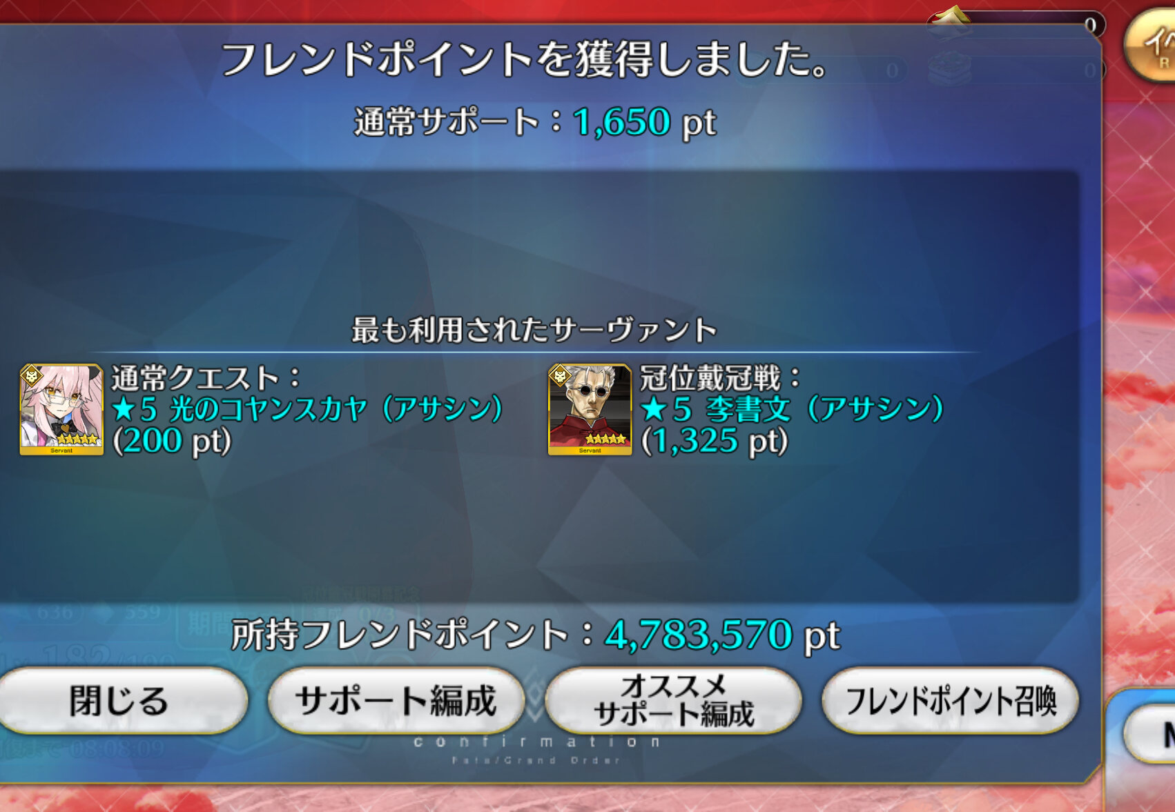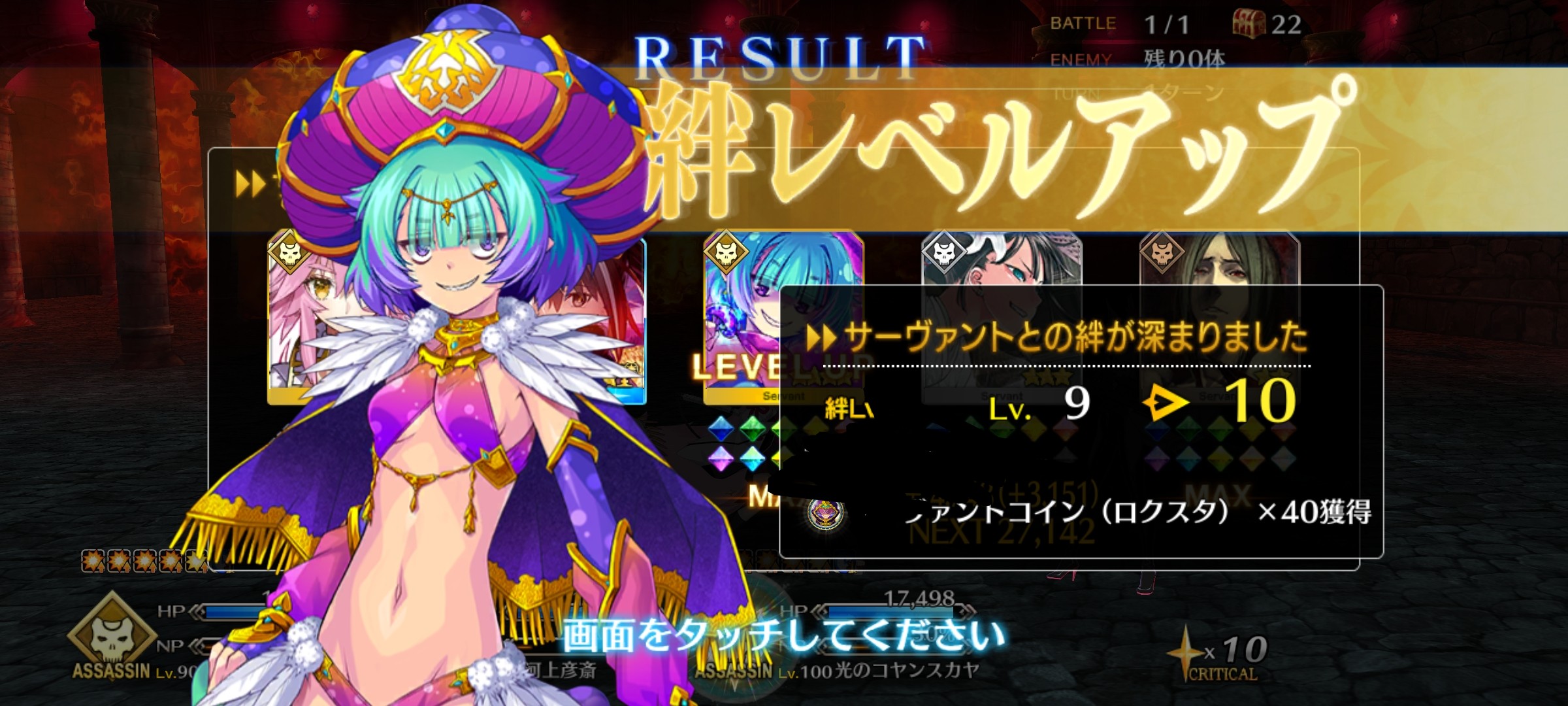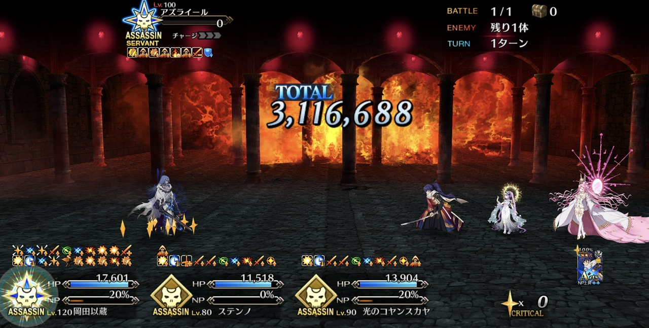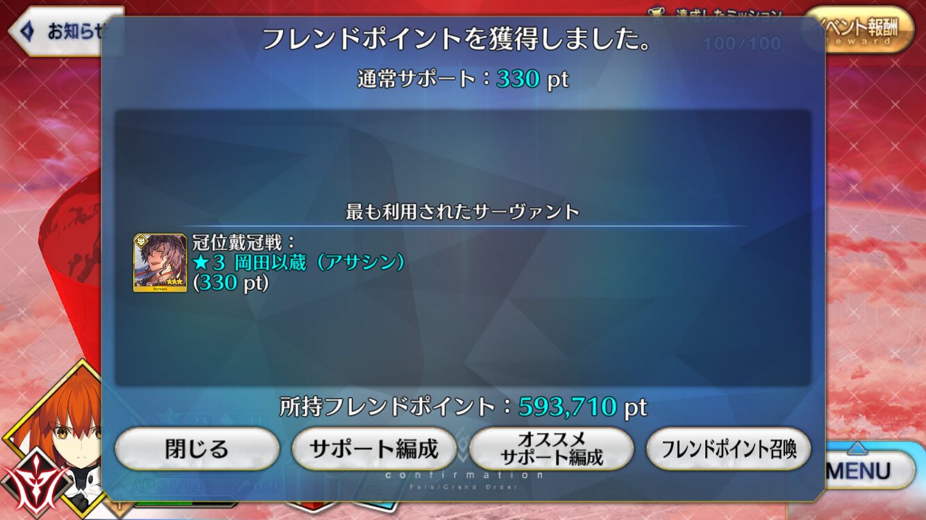 上姉様の吸血がNP27増で微妙に足りない所に、グランドスコアの+10%がスーッと効いてありがたい…