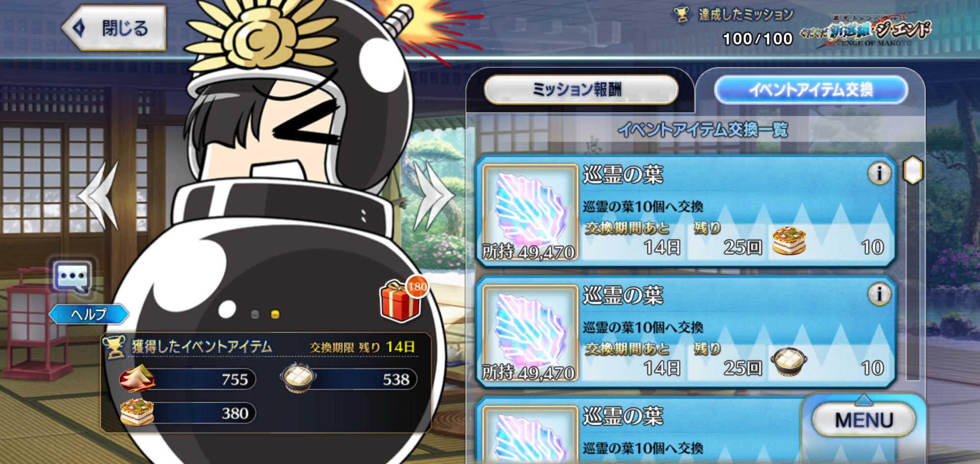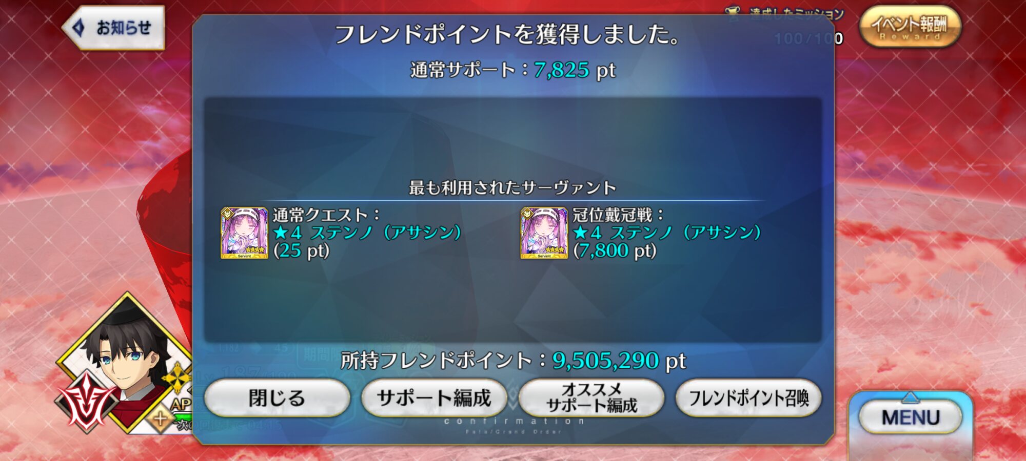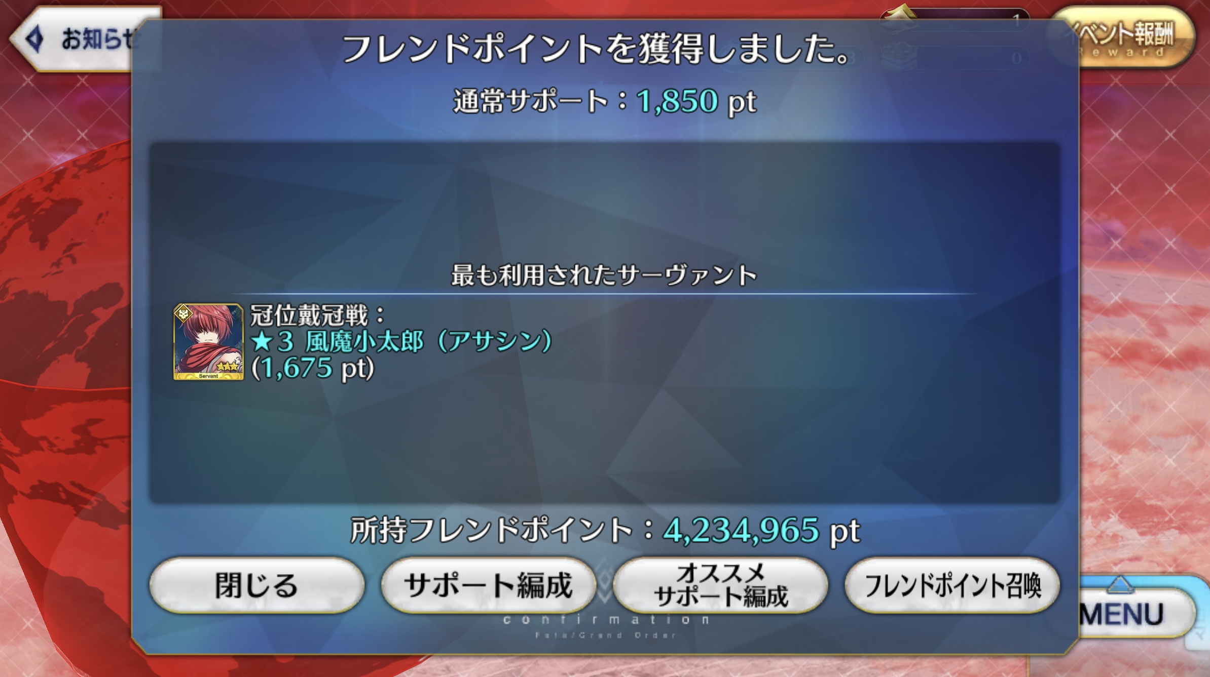 報酬・お守り一個+直近二回分のバトルマス自動クリア権