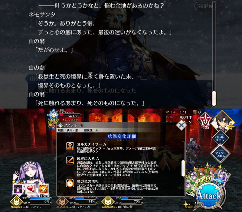 最終的な山の翁の状態も上手い具合場を和ませようとする挙動見られるからアズライール側にあったとしてもそんなに不思議じゃないよね意外性を突くなら女アーチャーになりそう
