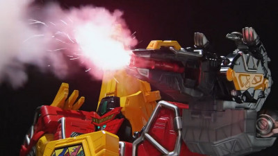 ゴーブラスター登場でこの後はブイランサーの必殺技のビッグブイバスターとゴーブラスターハイパーモードの必殺技のハイパーファイブを状況に応じて使い分けると、追加戦士の必殺武器・コレクションアイテムによる追加必殺技・既存の必殺武器に装飾が付く形でのパワーアップなどと違って完全新規の物で、初期の必殺バズーカ枠を後半でも併用とかじゃなくて途中追加の必殺バズーカ枠が後半は2つになったりとゴーゴーファイブは武装が多い印象だったなぁ。まあしかしこれオリガレッドの登場がすっごい重いことになってしまうような気がする