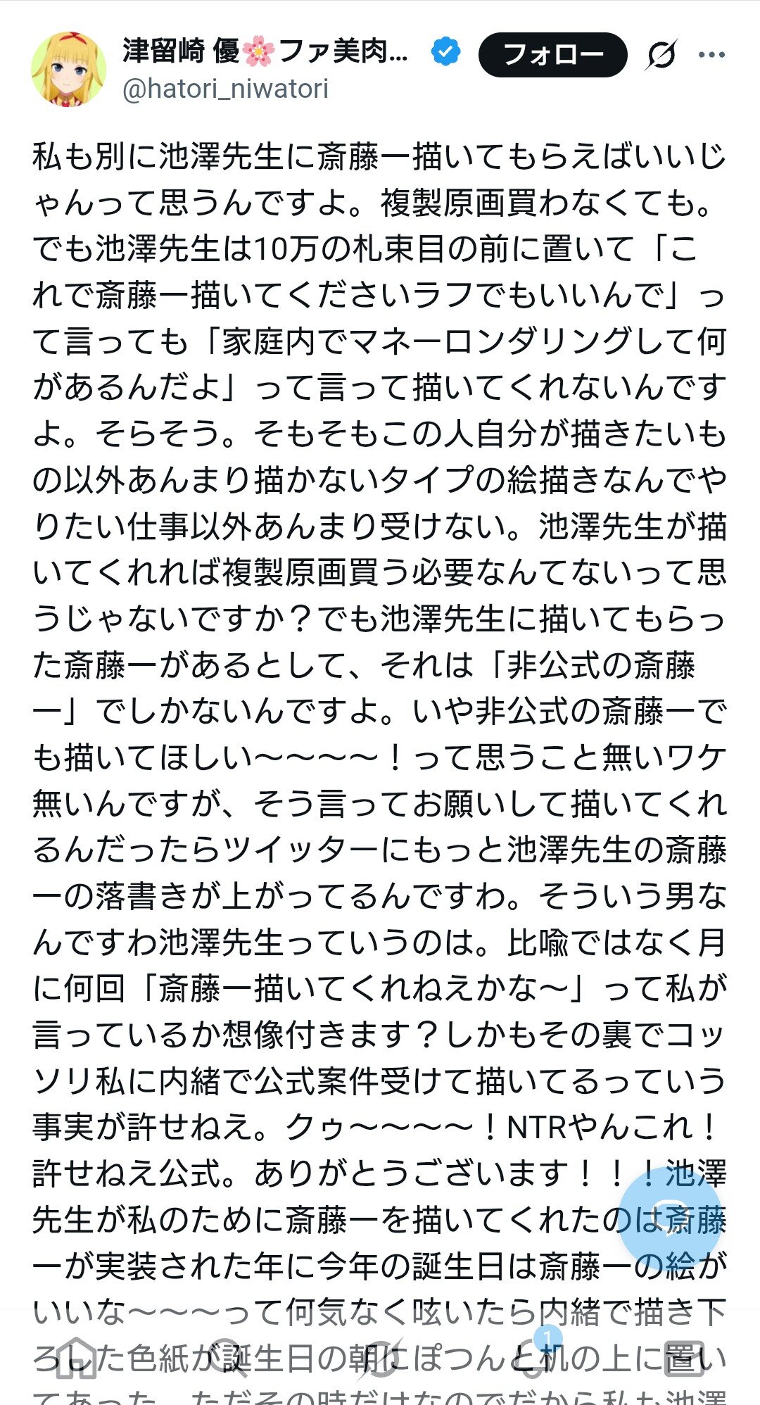 FGOが十周年なんだから当たり前やないですか>>93つまりアルトリア顔めっちゃ描く社長