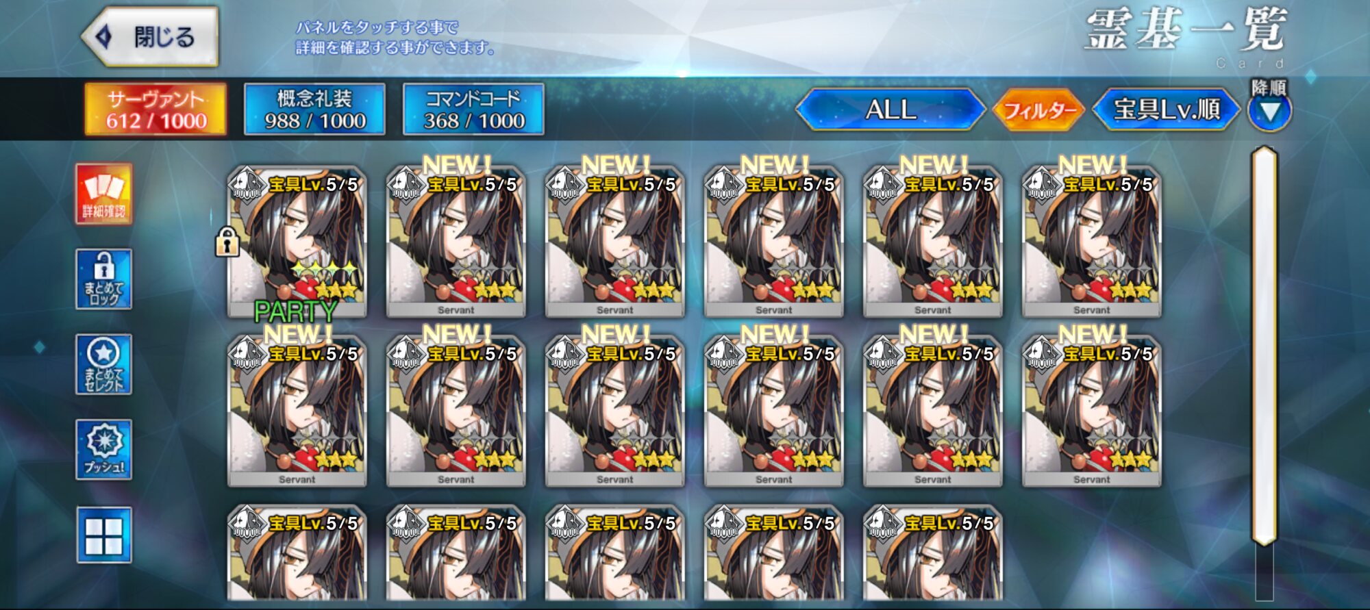 いいなぁ……うちのまっくろくろすけ、未だにあっちに合わせてるのか宝具2だよ……
