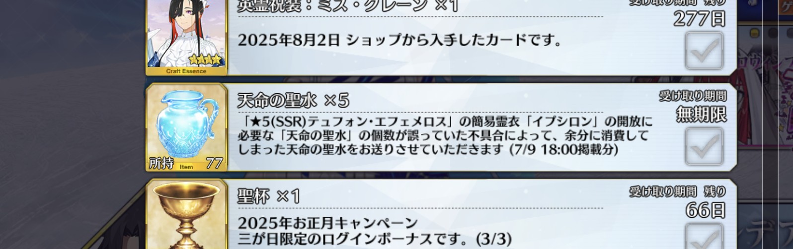 実は未だにキャスターの冠位で悩んでいてね⋯⋯暫定で三蔵ちゃんという事にしてるけどダ・ヴィンチちゃんも選びたくて決めきれない聖杯とか金フォウとか足跡とか推しにつぎ込むリソースは継続的に更新されてきたけど