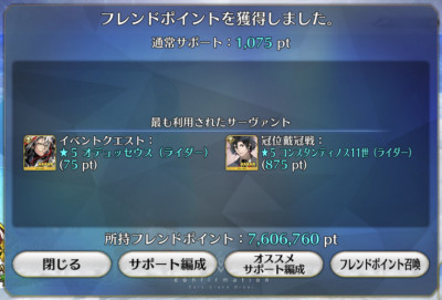 なかなか金鯖来なかったりセイバー来なくてフレンドさんのジークフリートさんにお世話になりました。