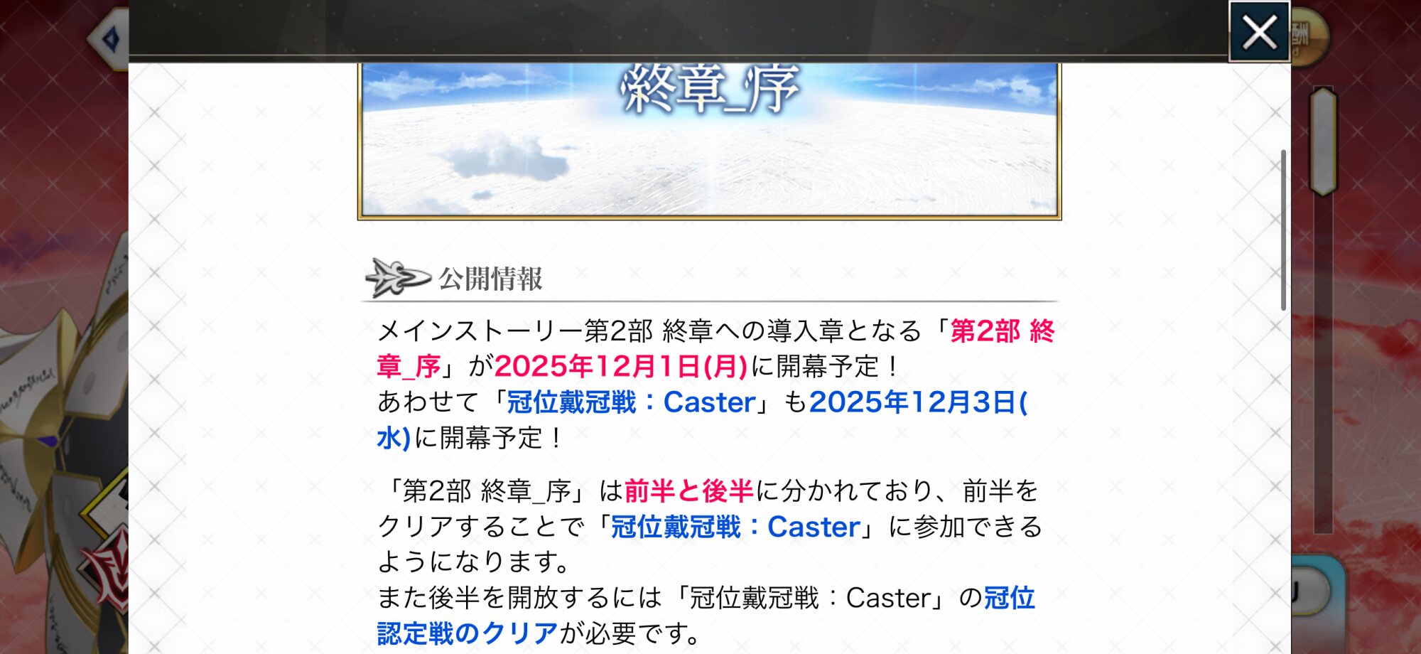 R18関連話題、よくてよ無しのガチャ結果、実装から二週間以内のシナリオ及び開催期間中のイベント内容、進行度依存の報酬、最終再臨や霊衣解放の画像や話題は専用スレにてお願いします