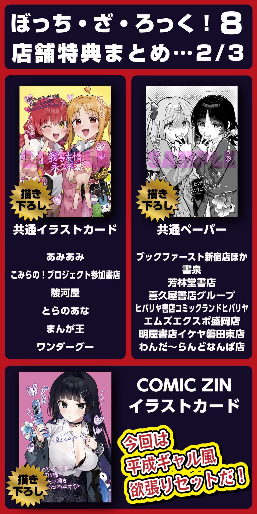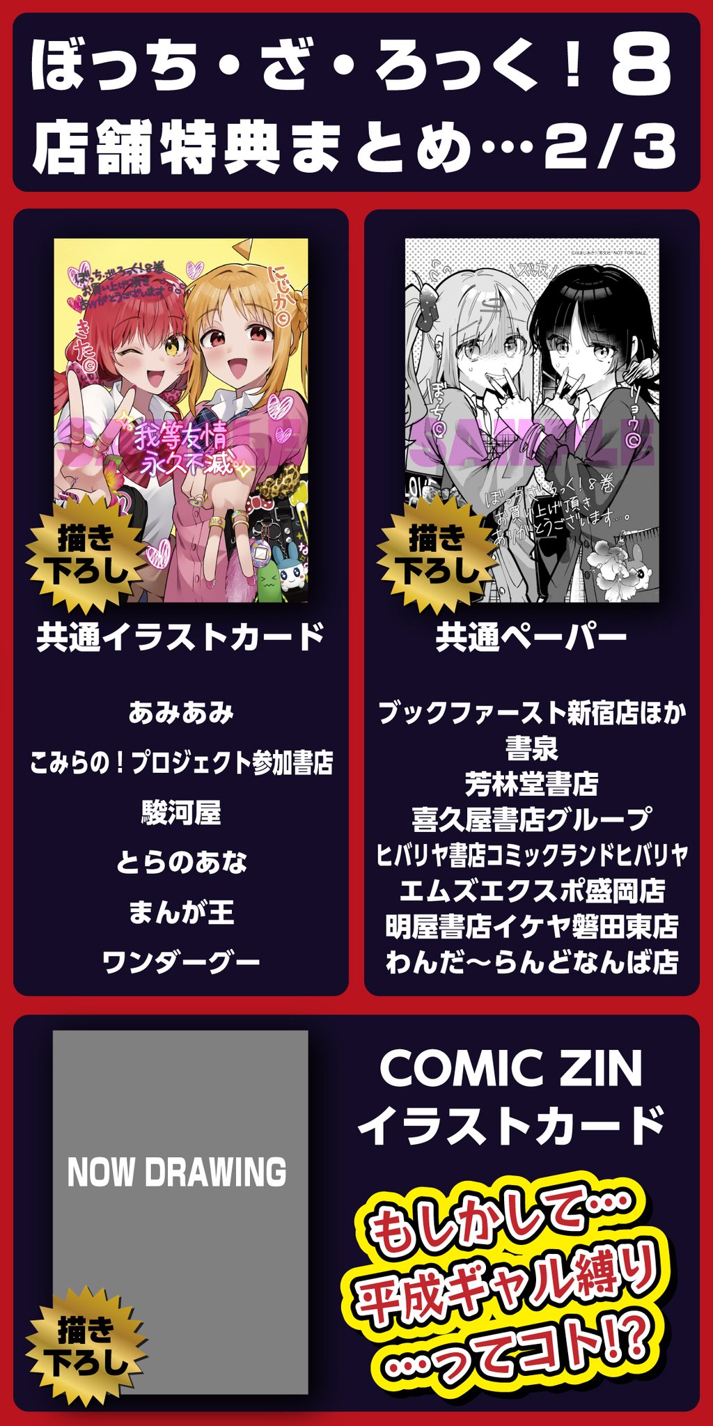 夜はポケモンのM次元ラッシュ新情報ぼざろ単行本の店舗特典、この流れでCOMIC ZINは誰が来るんだ……