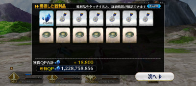 ランサーの彼女は久々に見た気がする…(ウチではアサシンで無双してる)QP消費してたら骨と羽がまたない・・・