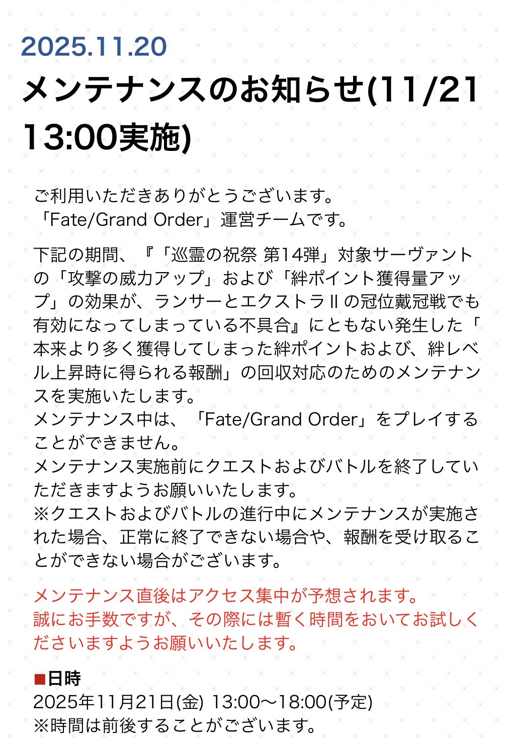 R18関連話題、よくてよ無しのガチャ結果、実装から二週間以内のシナリオ及び開催期間中のイベント内容、進行度依存の報酬、最終再臨や霊衣解放の画像や話題は専用スレにてお願いします