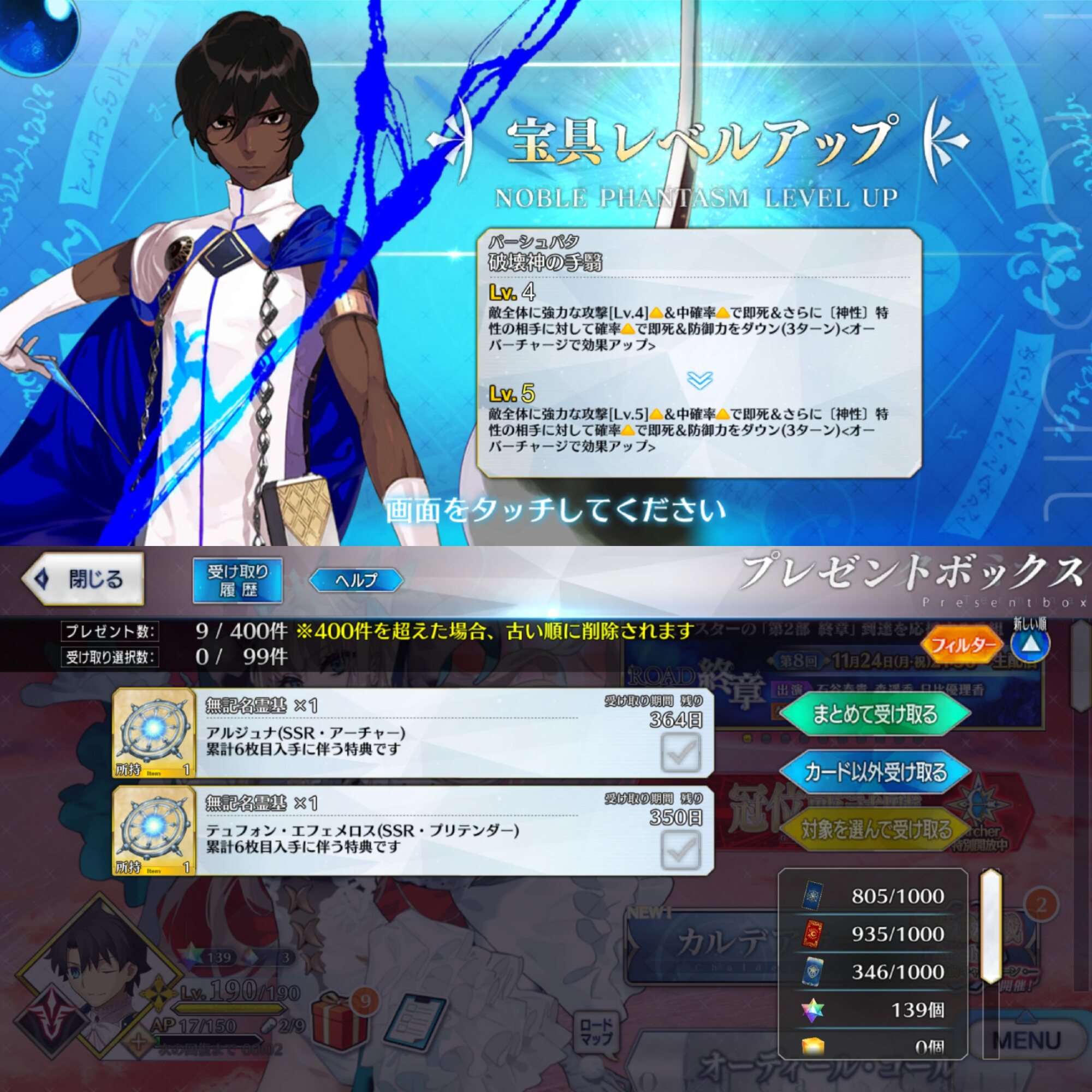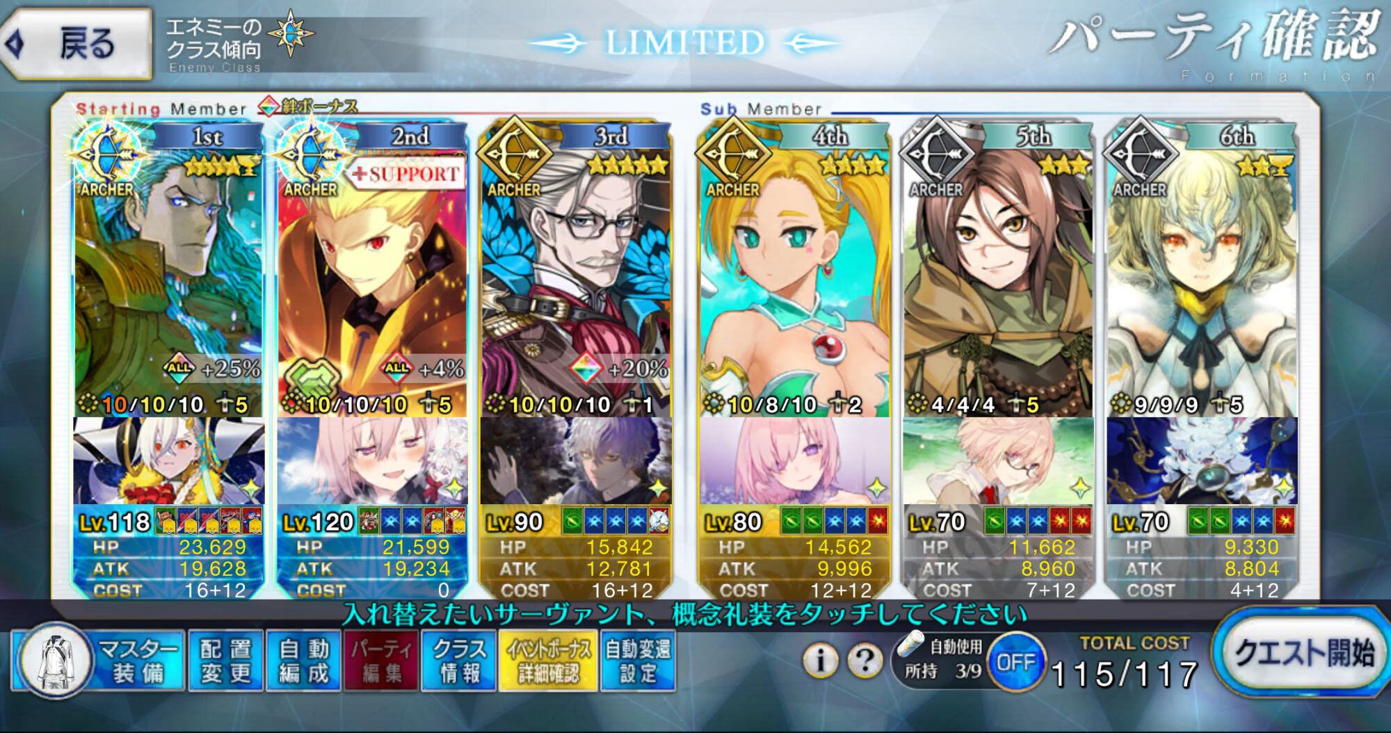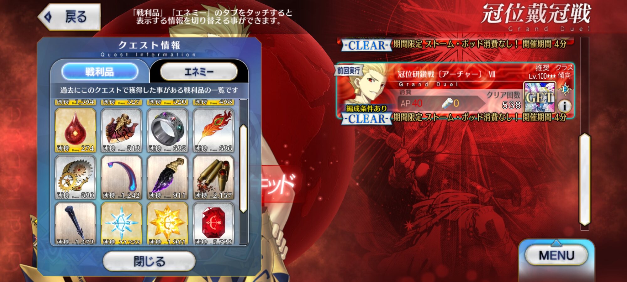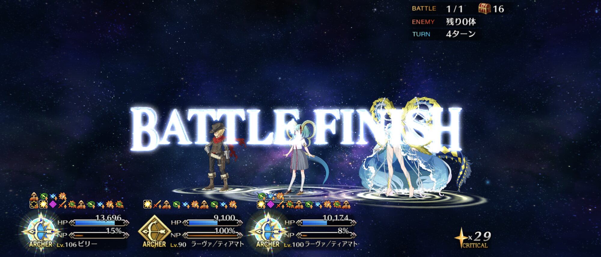 グランドアーチャーを絆13Lv120にできたし貯石もたっぷり
