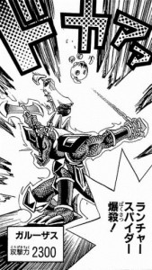 ガルーザス、デザインもだけどキース戦で鎖付きブーメラン装備してランチャースパイダー撃破した場面がめちゃカッコいいからリメイク的なカード出ないかなと思ってる。>>94