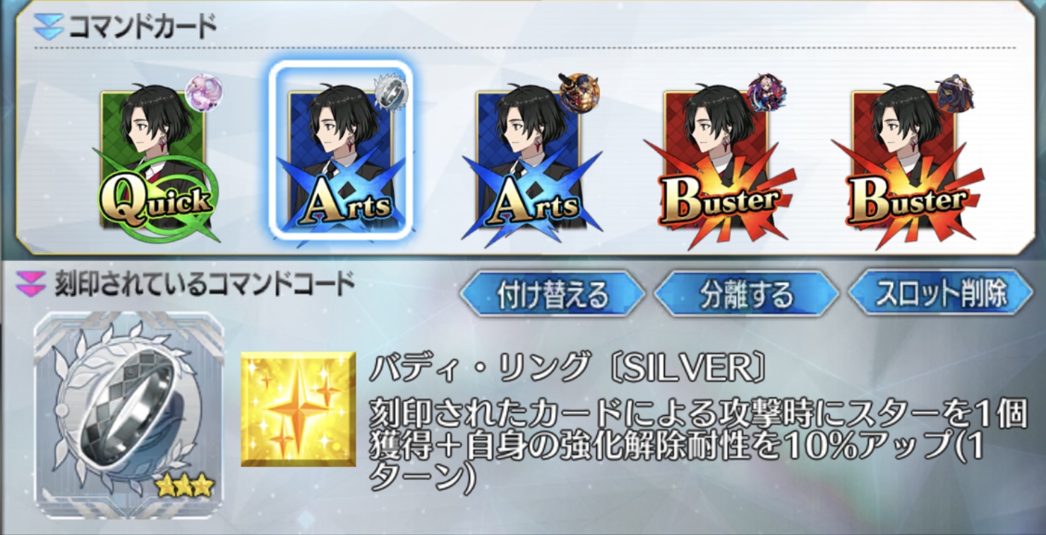 ・強化消去が厄介なら2つ目のマスター礼装の強化消去耐性でアタッカーだけでも守るべし