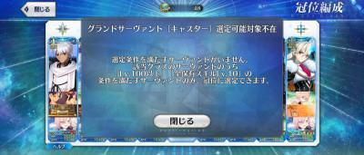 グラ班(死屍累々)冠位戴冠戦に配布くんちゃんを連れて行けないんですが…これは一体…?^^;