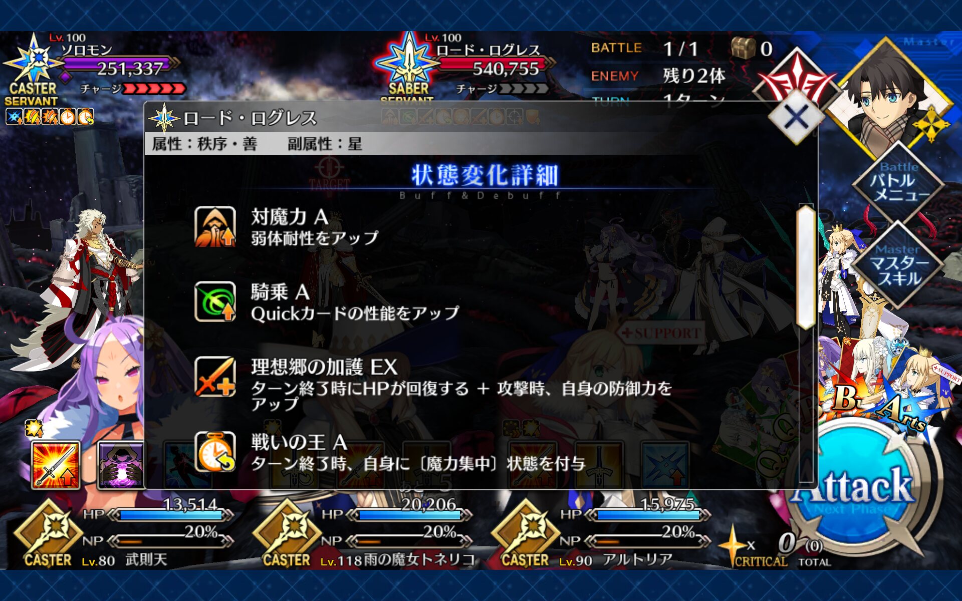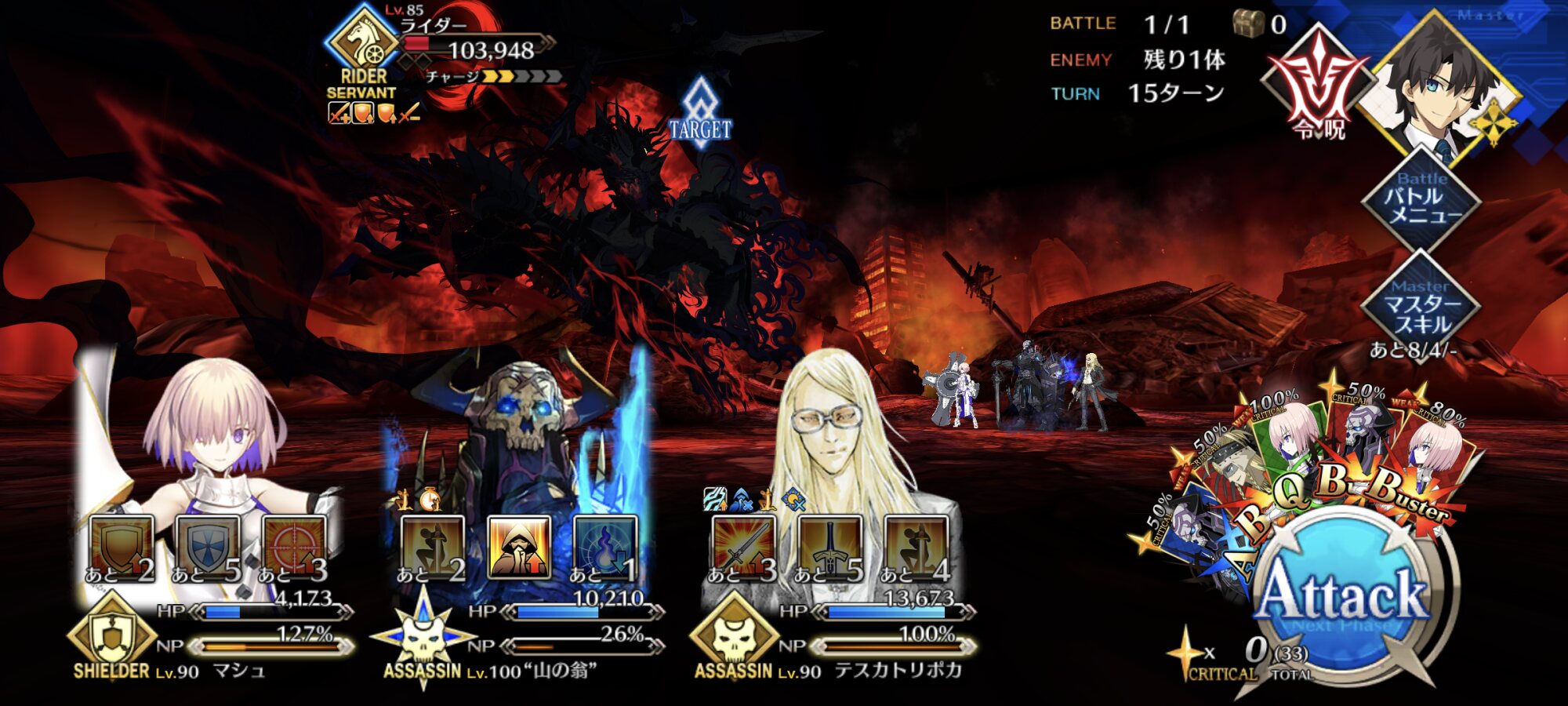 全体攻撃前の全強化解除宝具ってパワー!!!ヤー!!!!だよねドーモ、マスター=サン。