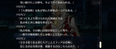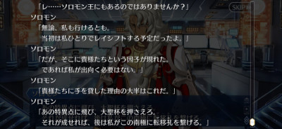 それに今年は実装予定だったサーヴァント来年に回すことになるぐらいギチギチのスケジュールだからソロモンが味方になったのは嬉しいけど、逆に言えばソロモンが協力しないと勝てないぐらいにはヤバいわけで
