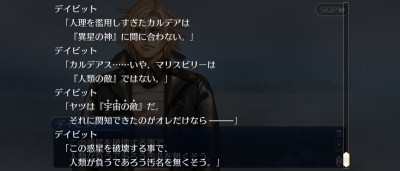 あのトラップ程度なら別にどうとでもなっただろうが、デイビットは自前でレイシフトを行う準備もカルデアスにアクセスできる経路もなかったわけだから…>>941