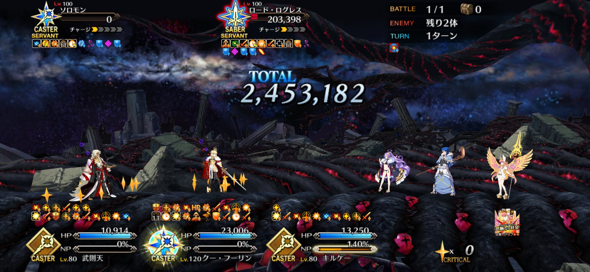 今回のキャスターの場合はNPに余裕があるのでいろんな選択肢があるふーやーちゃんでソロモンゾンビにしたらキャスニキの宝具威力馬鹿みたいに上がって草