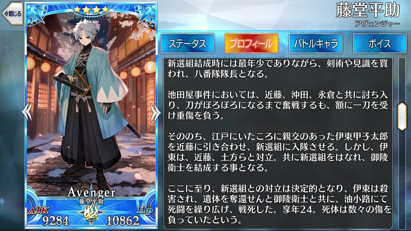 剣術じゃ土方歳三をもしのぐ腕だったと残っているし、補助系セイバーとかになるんじゃないすかね、山並先生の時みたく>>27