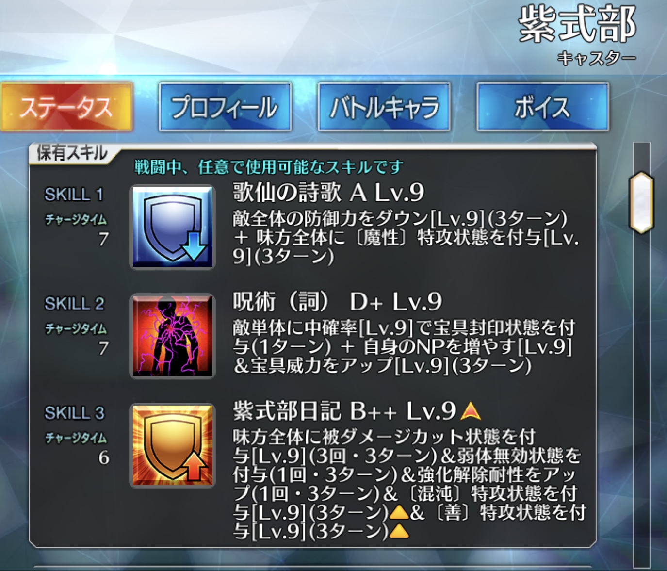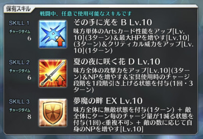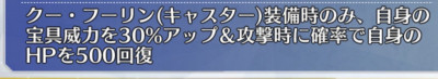 彼らしいと言えばらしいなぁ・・・・しかしねぇ最近研鑽戦で大活躍の某女史の絆礼装は弱体耐性+100%という役立つ場面は確かにありそうだけど該当箇所が重箱の隅過ぎないかという何とも言えない性能なのだから…