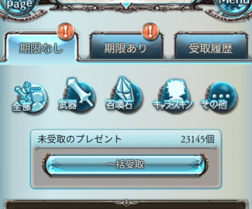 グラブルだと受け取り期限ないのは入れっぱなしにできるんだ。