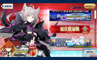 最終物資補完作戦の方のクエストでバーサーカーモニュメントが落ちるのを今日知って、クラススコアの為にずっと回って何とか開ききった…