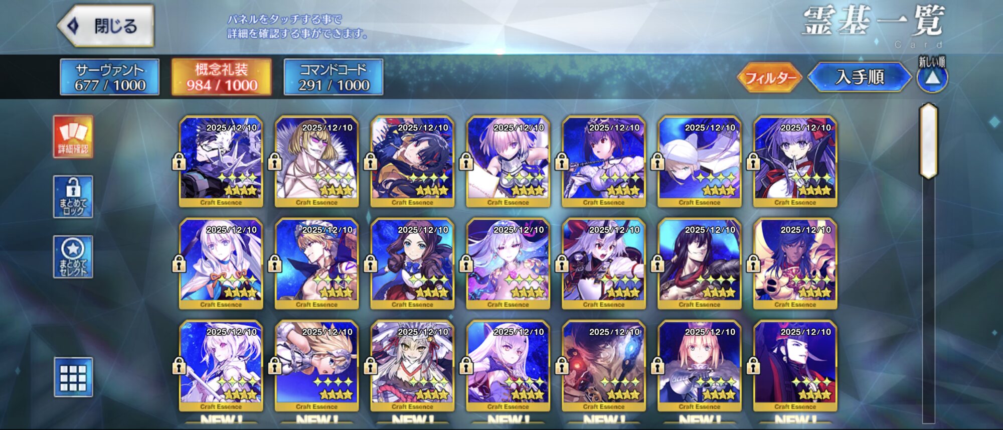 OTSS礼装とかはコンプするの敬遠したけど、さすがにこれはコンプしたわおはよー 今日1950日ログインだった