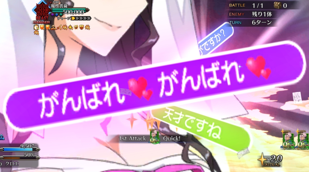 カズラちゃんはフォーリナーとバーサーカー相手だとクラス有利と特効どっちも刺さるのよね、本来等倍になるところをそれ以上の火力になるよう設計された特効に本来のクラス有利がプラスされるという・・・適当な思いつき
