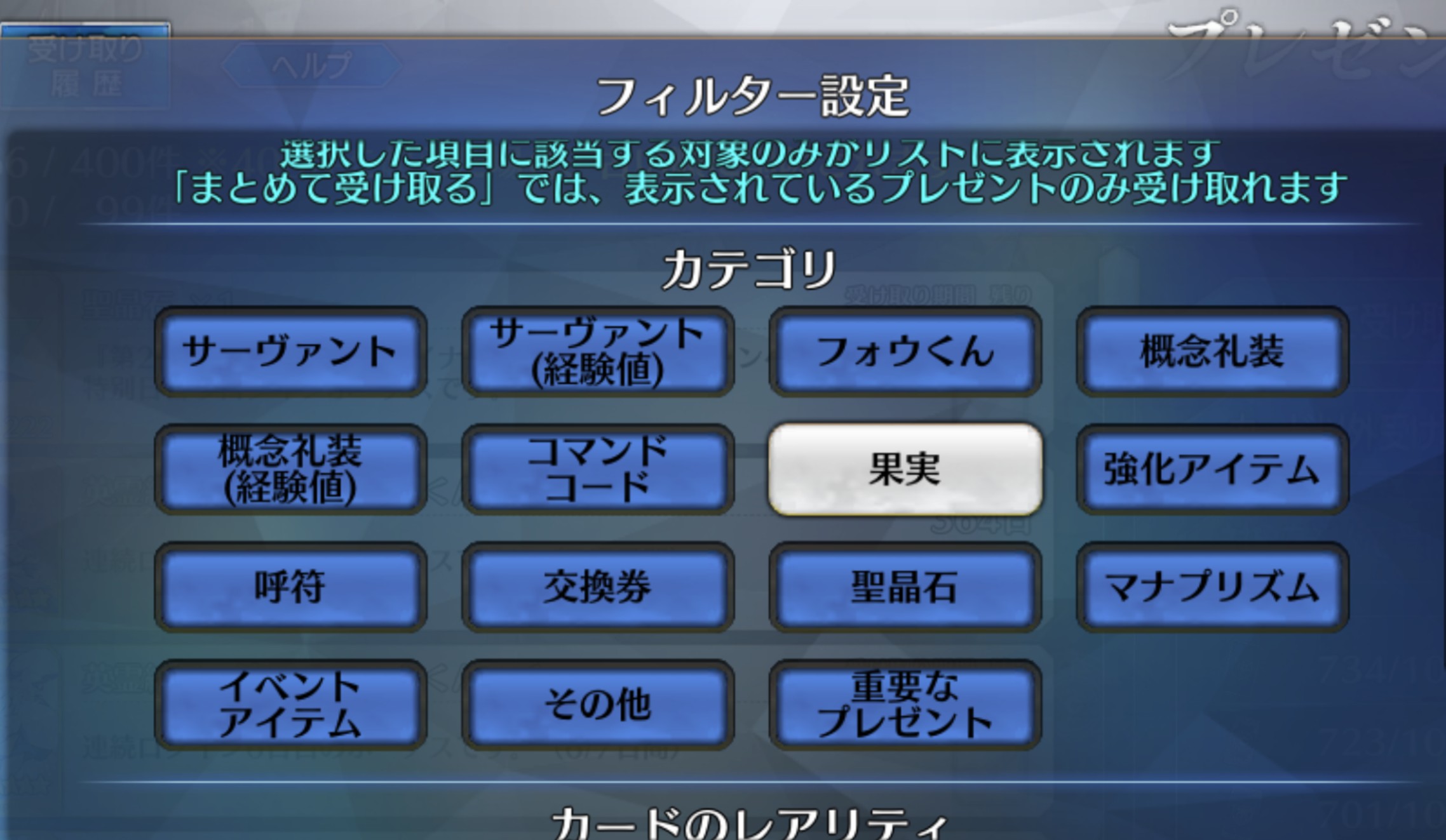 それはビーストⅠ~Ⅶの番外に位置するカルデアの獣巡礼の葉を使うと過去のイベントシナリオ解放されるとかやんないかねえ。キャラによってはイベントシナリオの方にしか出てこないとかもある訳だから後発マスターは損しちゃうし。