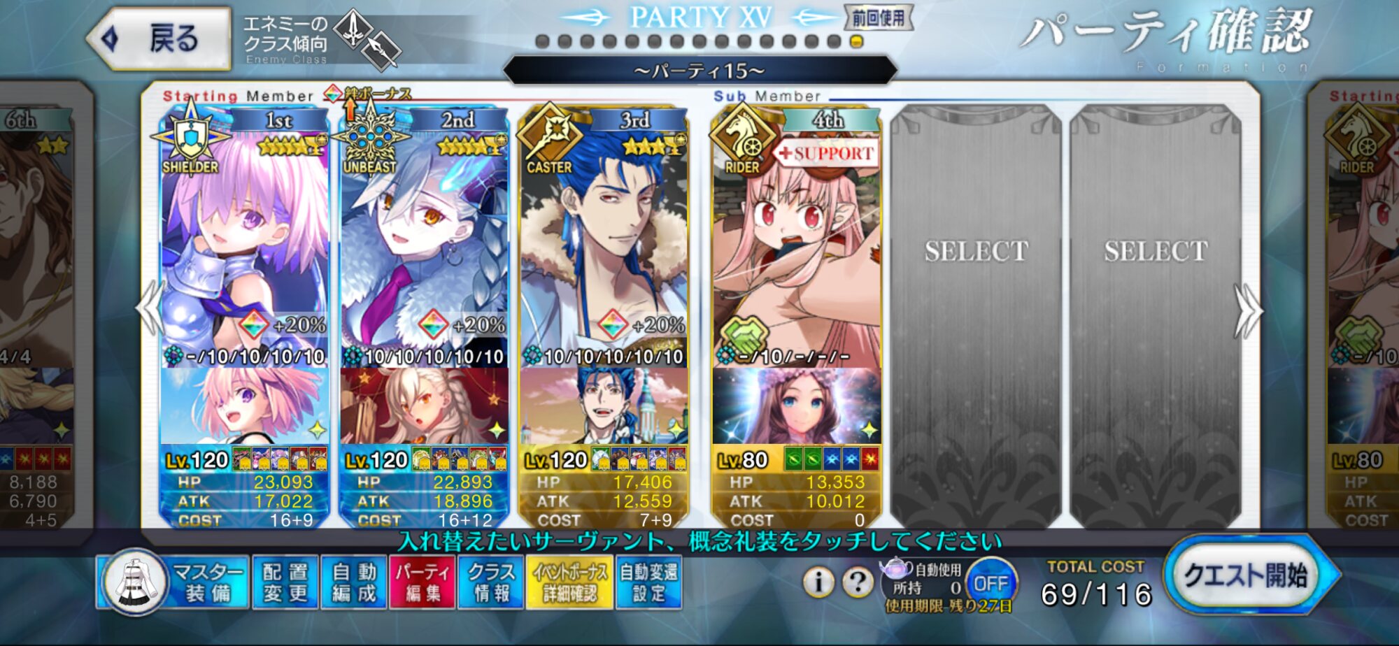 190になりましたが相変わらず1足りないコストがでますねえ・・・.........FGOは罪人でも世界を救えるゲームですね!!