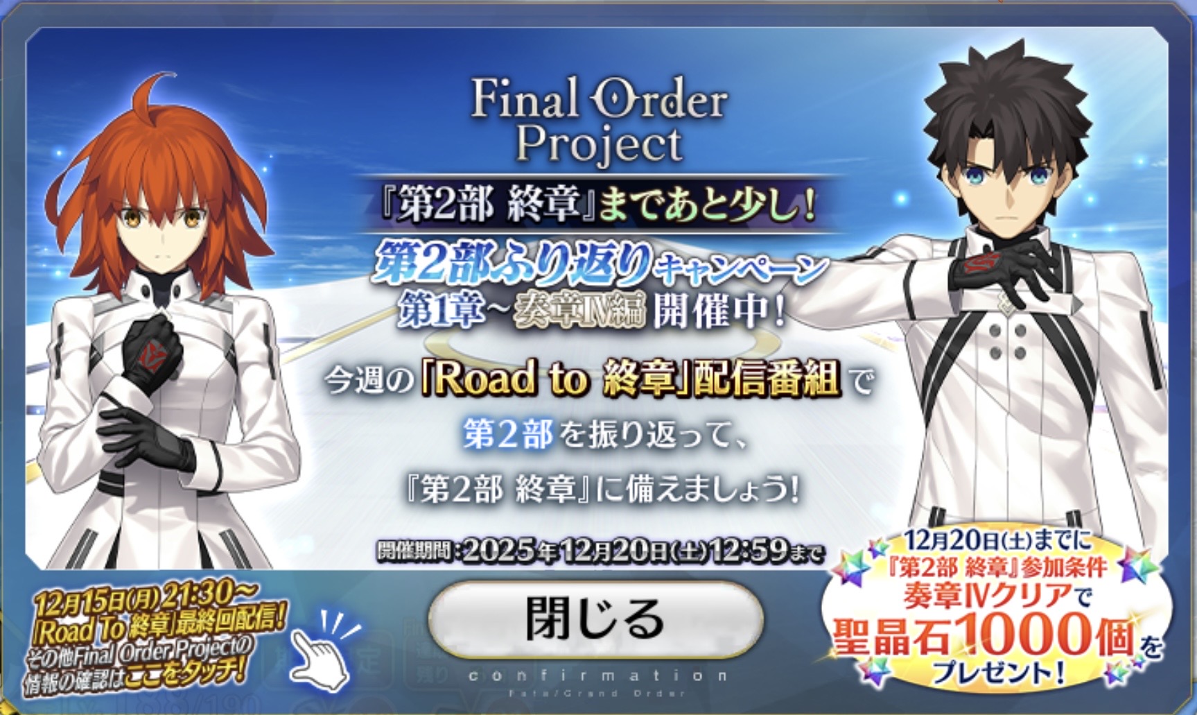 アニメは気に入っているのに2期が無さそうな作品って本当に辛い。聖杯に願うしかないのか……終章始まったら起こして…