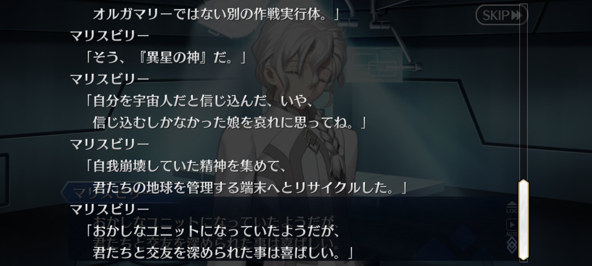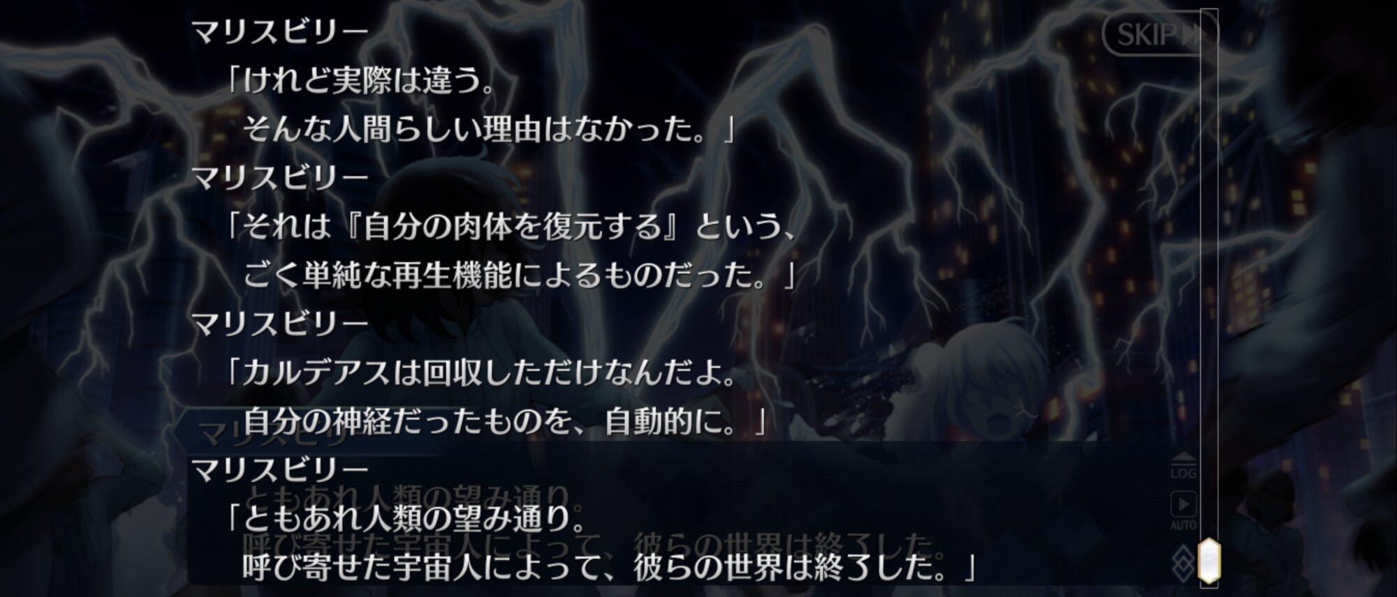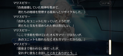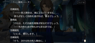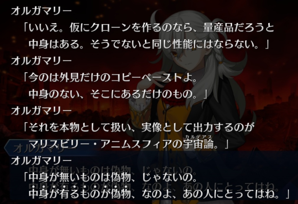 型月世界ってテクスチャーが全部決めているから「神様と同じで、みんなが魂や精神の存在を信じているから存在するだけ。信仰がなくなれば存在を失うもの。」って考えたのかもしれないね。ようやく追いつきましたー。あの所長は現象化したマシュみたくこの特異点での経験を繰り返してたのかな?