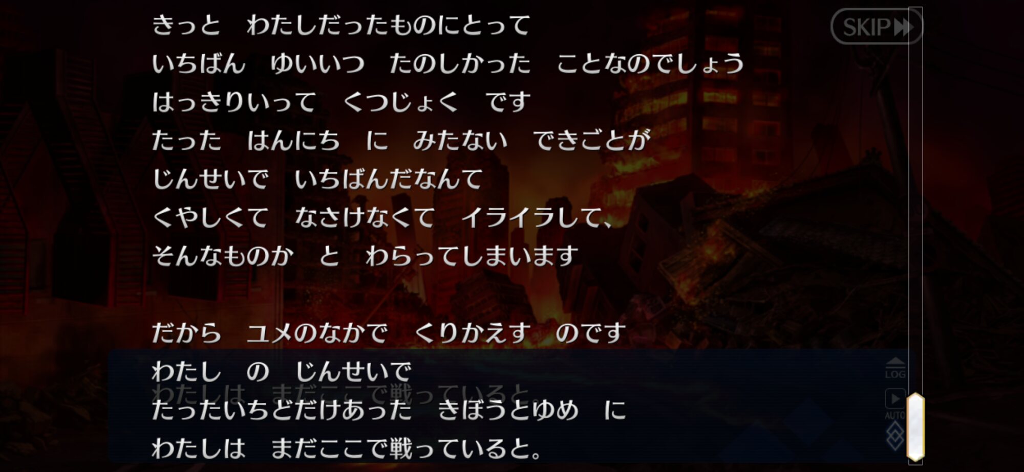 しかし、今回の更新分でこれまでの主題歌の歌詞っぽいフレーズ全乗せしてるのにはニヤニヤした