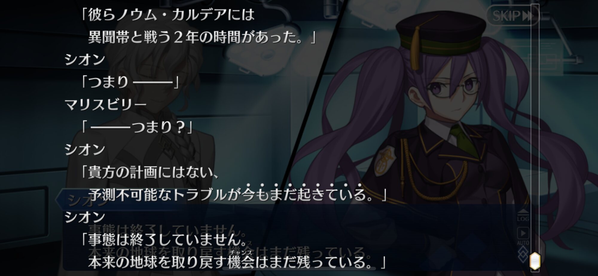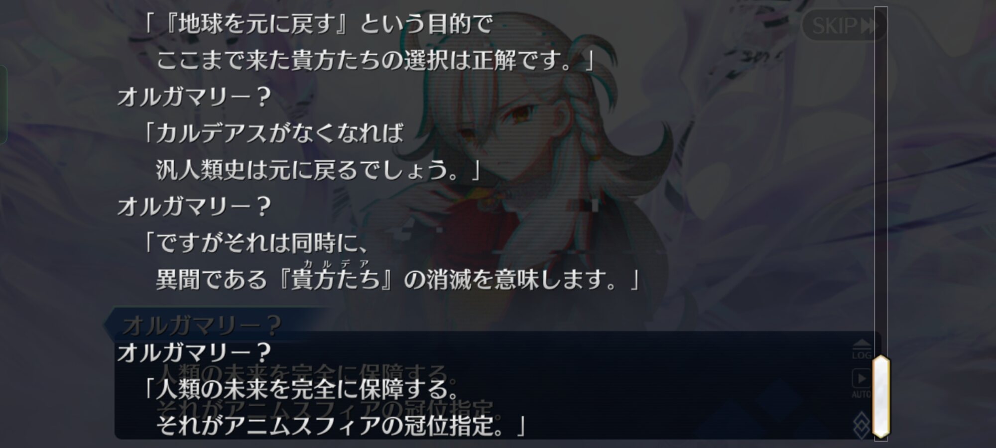 所長とはお別れ~な感じがしてたけど、現状大聖杯上空でレフが開けた穴をアンカーにしてカルデアスを引っ張り出すor突入する寸前だから、まだ特異点解消してるわけじゃないんだよね?オルガマリー所長かわいい