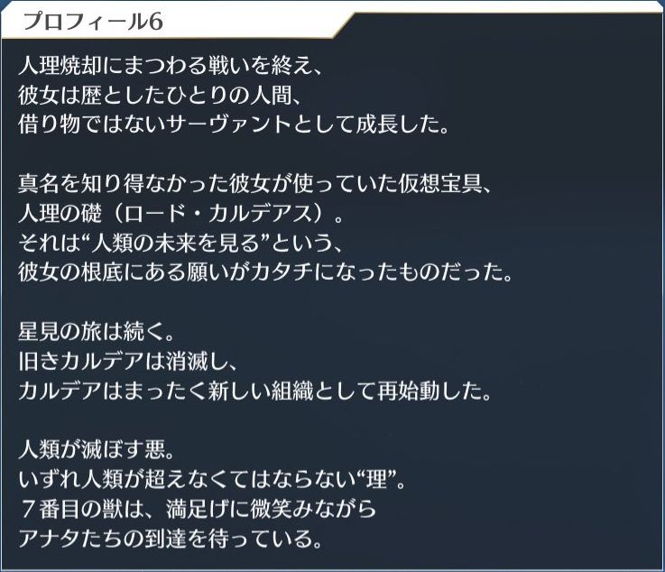 あるいはビーストⅤとビーストⅥ/Gがマリス・カルデアスに代わって、Lostbelt No.0を維持する機構になってしまったとかあるかもな