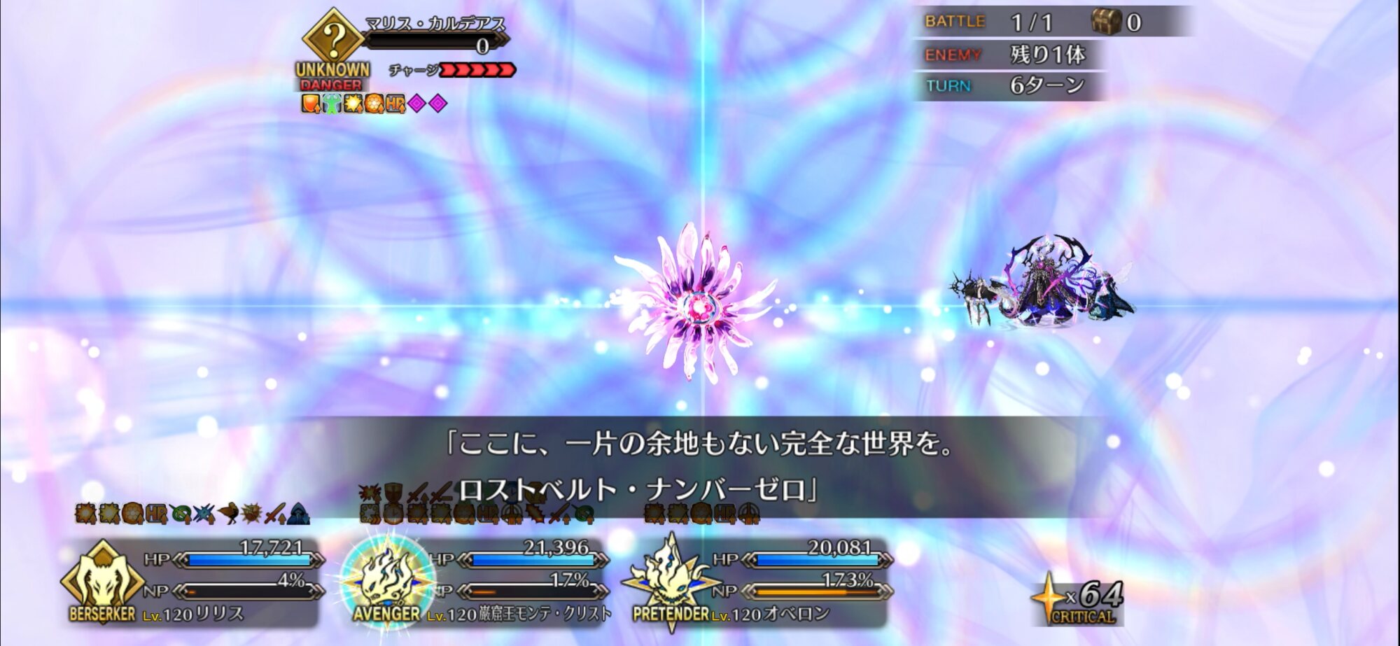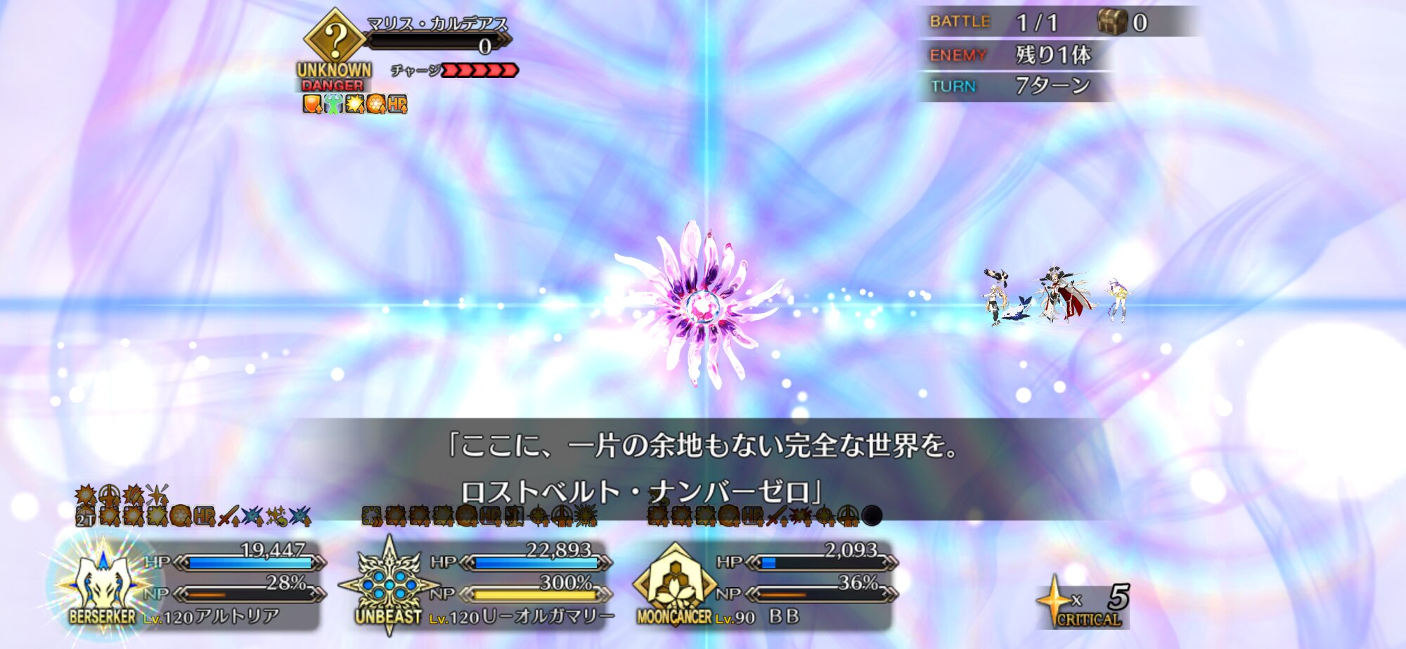 今までのシナリオ戦闘なら『なんか喋る→HP回復する→強制敵宝具→バトル終了』の流れだったはずつまるところ、自分さえ生まれなければ、世界(ワタシ)はこんなにも平和だった