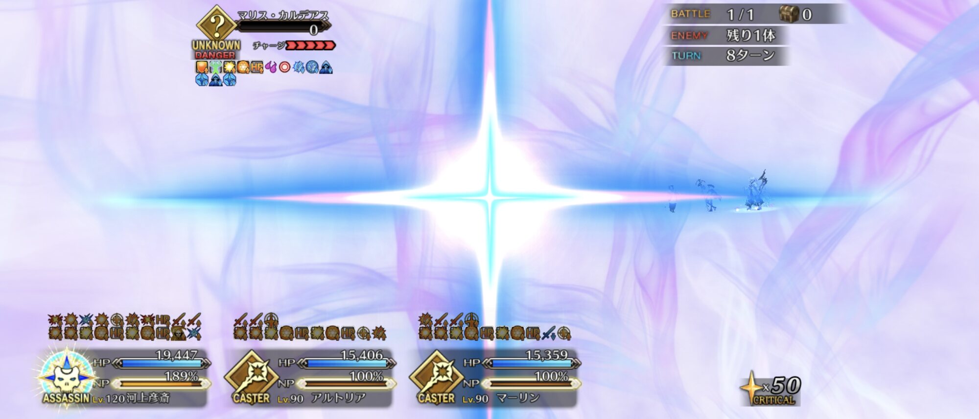 HP0のままペラペラ喋り始める、そしてHP0のままチャージ最大から宝具ぶっ放してくる