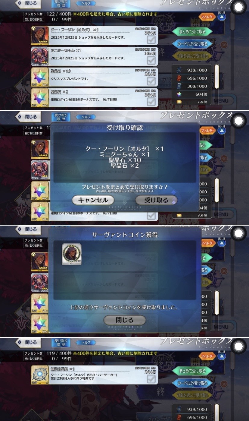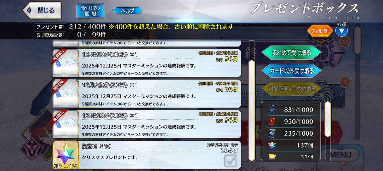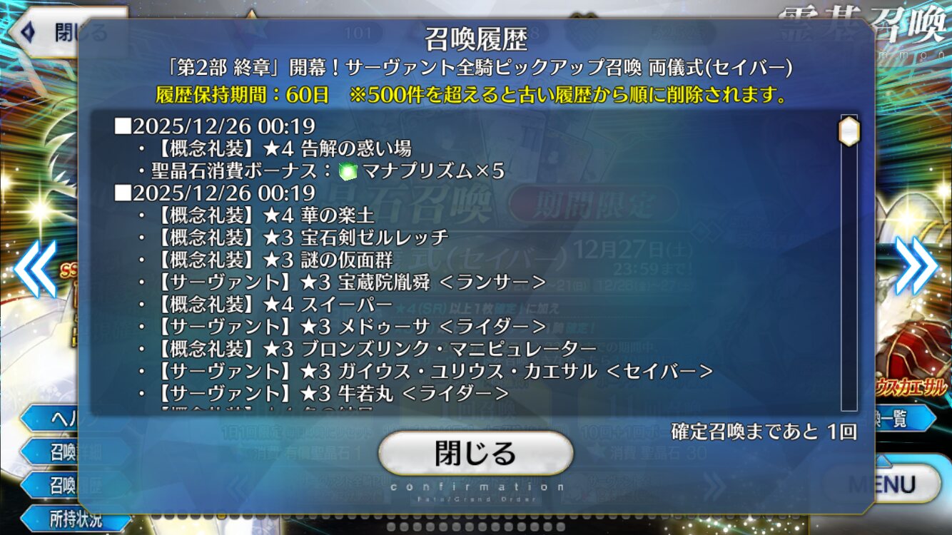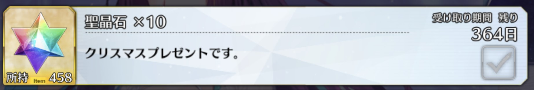 聖晶石10個、クリスマスプレゼントですってすごい淡々と書いてあって吹いたメリークリスマス