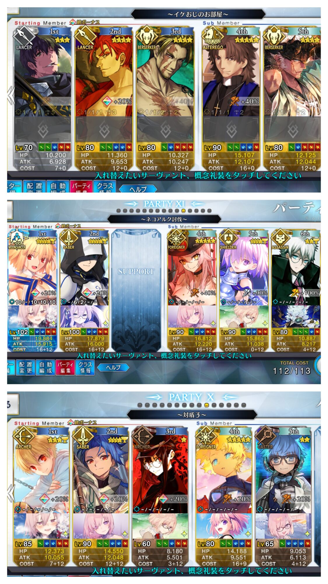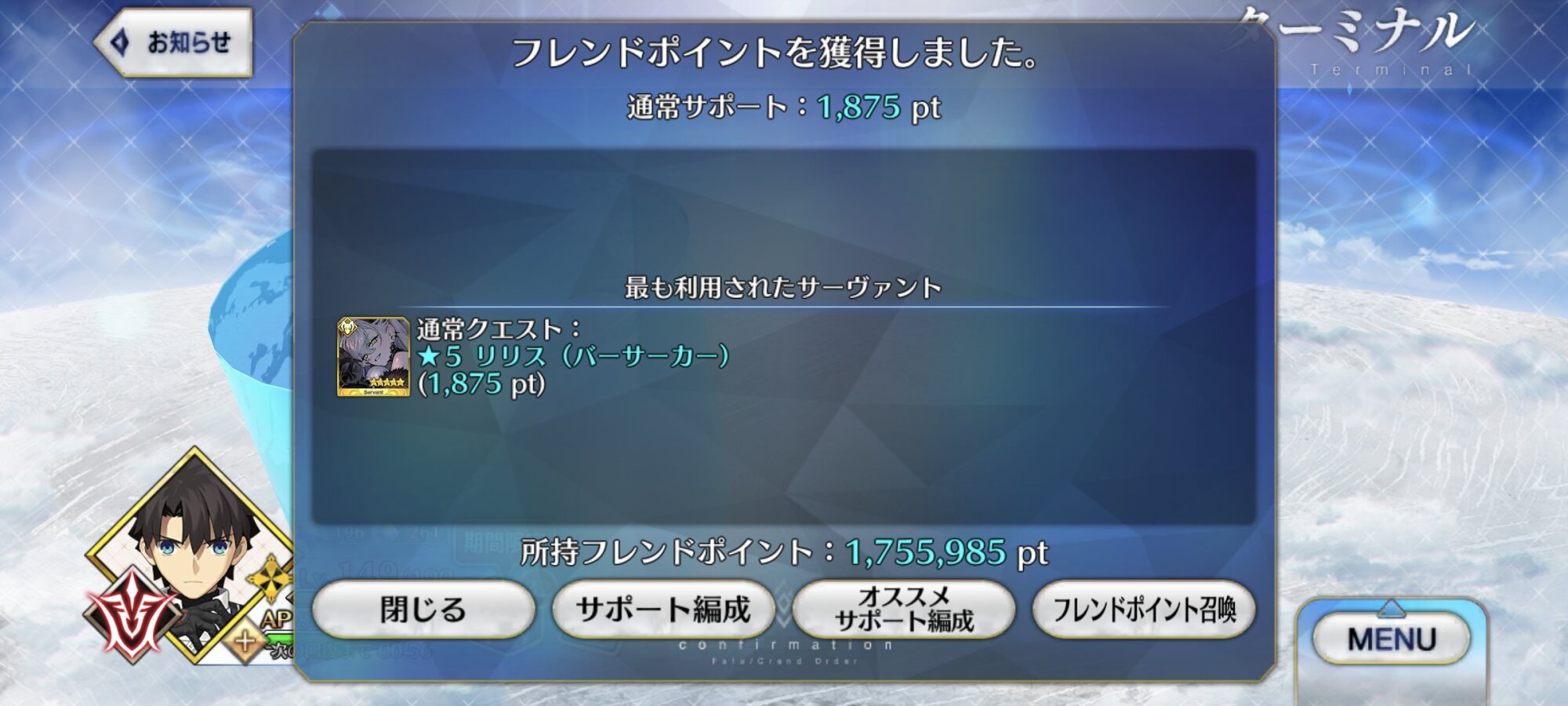 1000なら絆15サーヴァントを貼る